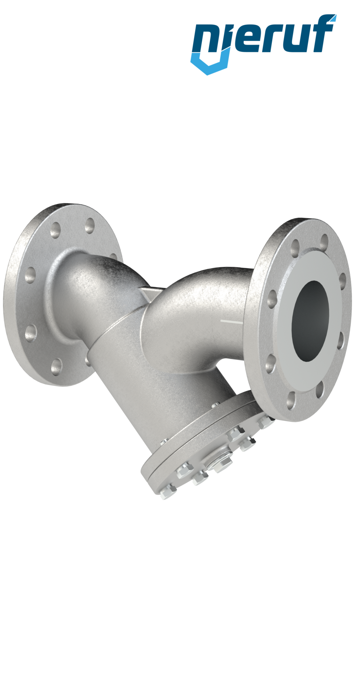 Filtre à tamis à bride en acier inoxydable de type Y avec bouchon de purge et filtre amovible en acier inoxydable, montage horizontal ou vertical.