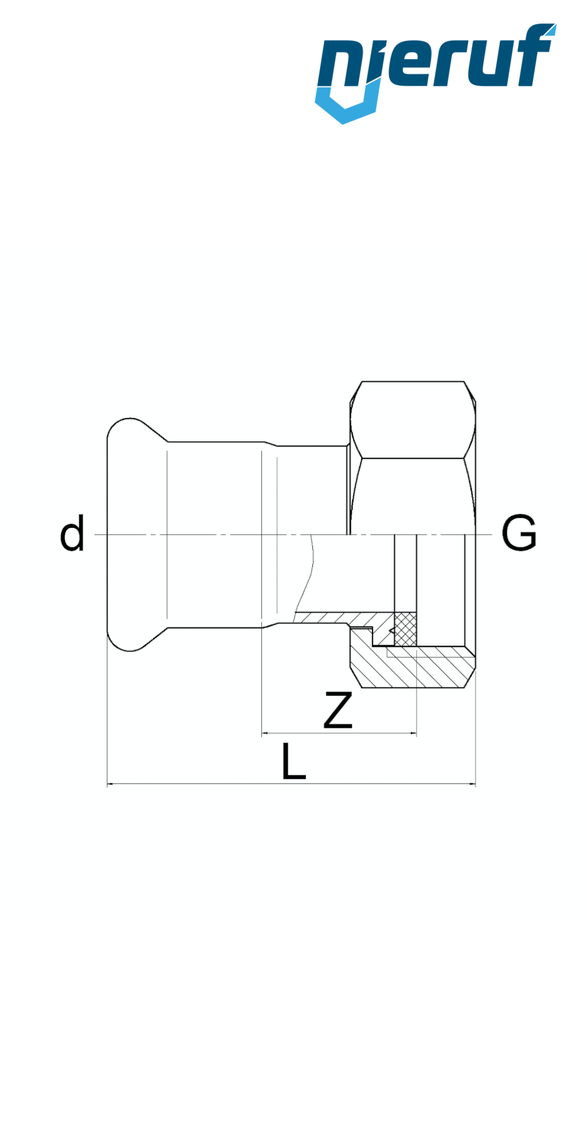 raccord à visser femelle PF01-08 avec raccordement par sertissage F DN32 - 35,0 mm, femelle 1 1/2" pouce en acier inoxydable pour fluides liquides et gazeux