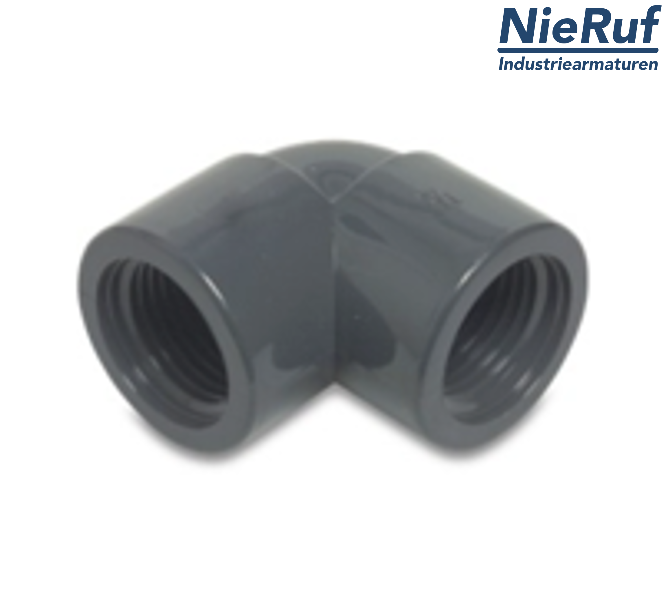 raccord coudé GF03-0 1 1/2" pouce femelle en PVC-U avec angle de 90° pour fluides liquides et gazeux