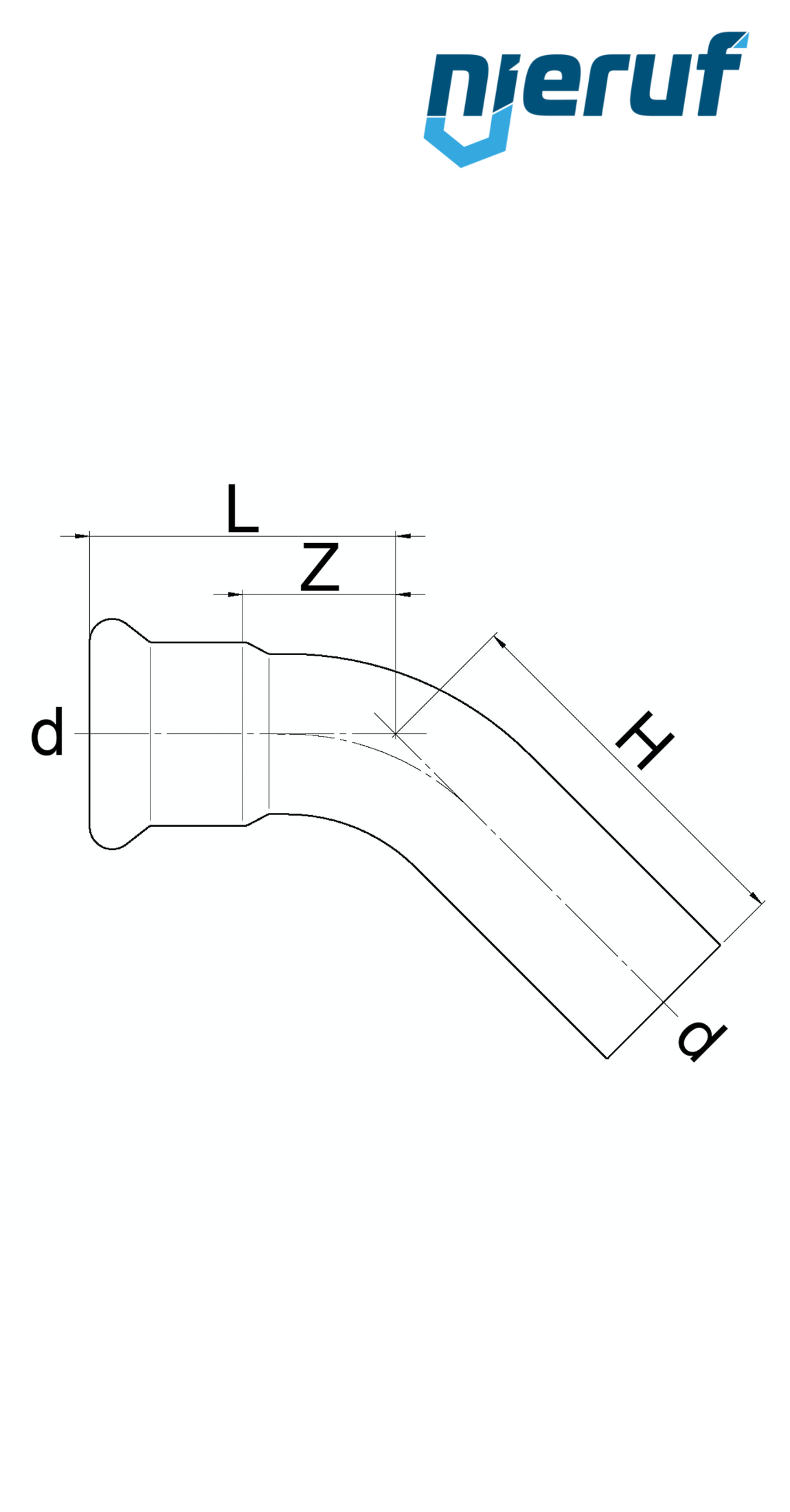 raccord coudé 45° PF01-00 avec raccordement par sertissage F x M DN15 - 18,0 mm en acier inoxydable pour fluides liquides et gazeux