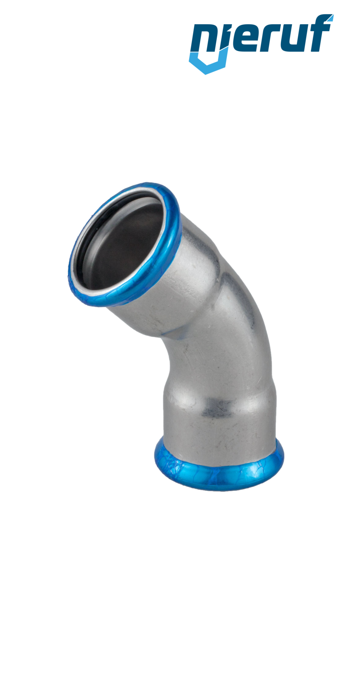 raccord coudé 45° PF01-00 avec raccordement par sertissage F x F DN20 - 22,0 mm en acier inoxydable pour fluides liquides et gazeux