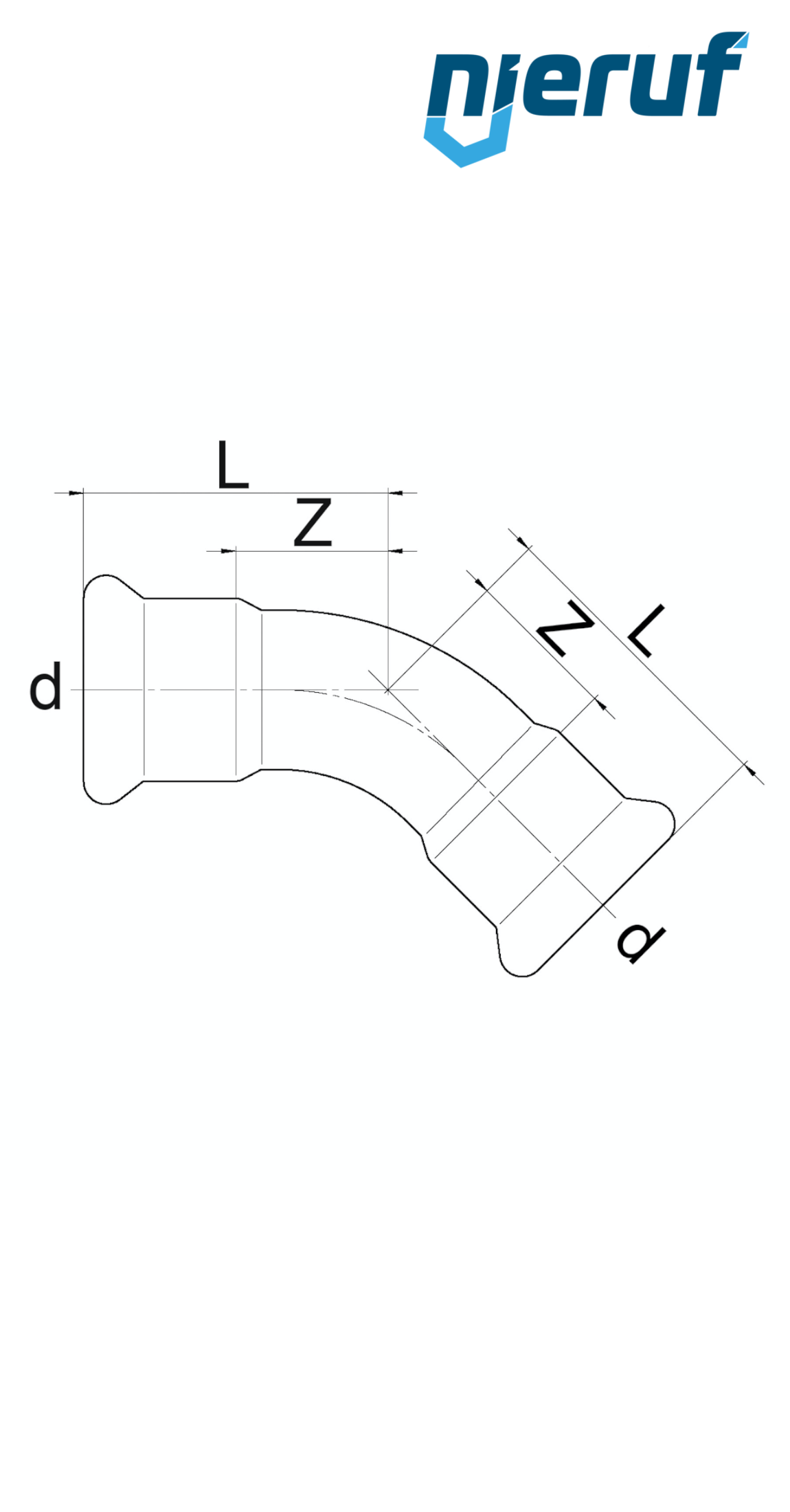 raccord coudé 45° PF01-00 avec raccordement par sertissage F x F DN40 - 42,0 mm en acier inoxydable pour fluides liquides et gazeux
