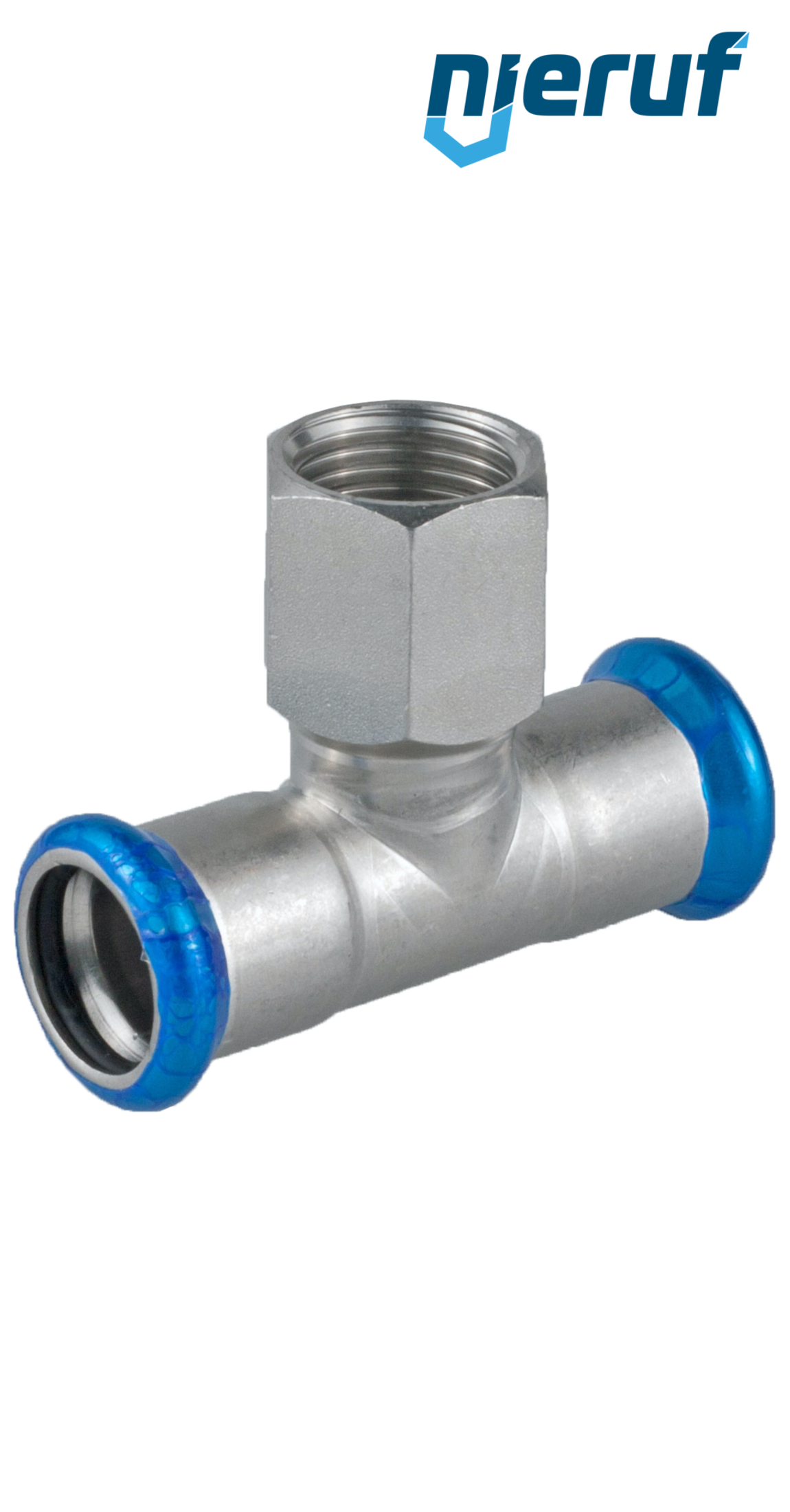 raccord en T PF01-01 avec raccordement par sertissage F x F DN32 - 35,0 mm, femelle 1 1/4" pouce en acier inoxydable pour fluides liquides et gazeux