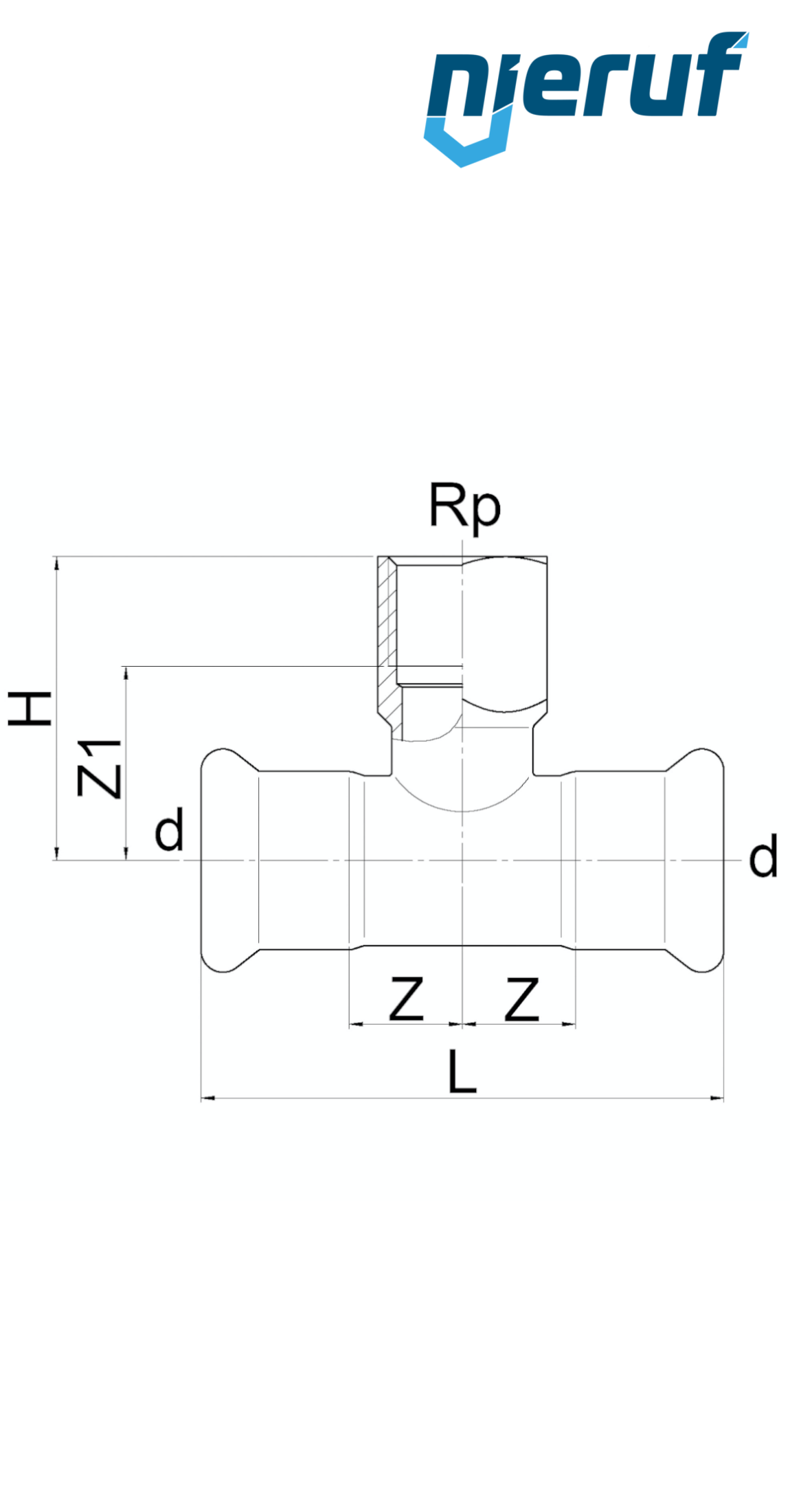 raccord en T PF01-01 avec raccordement par sertissage F x F DN50 - 54,0 mm, femelle 1" pouce en acier inoxydable pour fluides liquides et gazeux