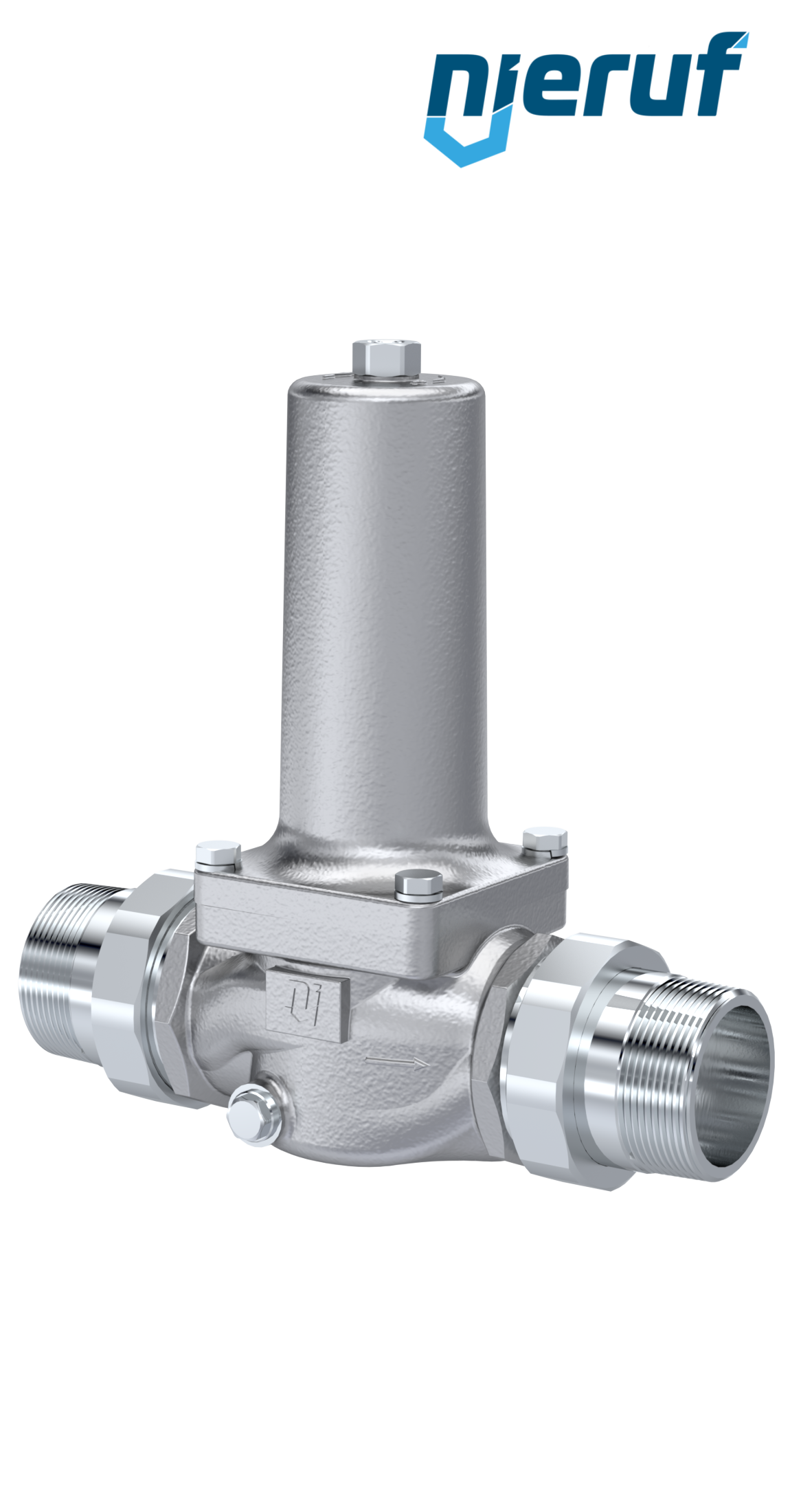 réducteur de pression 1 1/2" pouce avec mâle ISO 7 / BSP-T fait de acier inoxydable joint FPM / FKM pour substances liquides et gazeuses neutres, réglage de la pression 1.5 - 6.0 bar