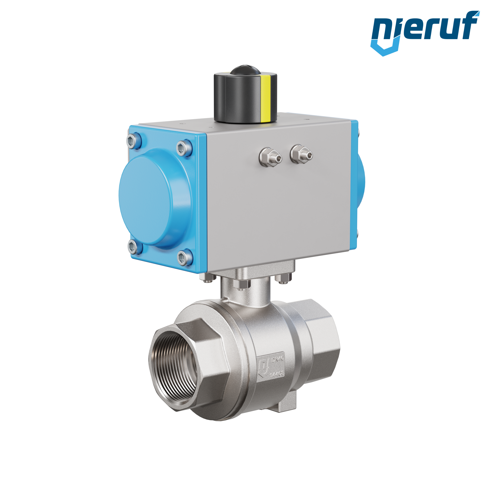 robinet à boisseau sphérique pneumatique DN40 - 1 1/2" pouce acier inoxydable 1.4408 PK02 actionneur rotatif pneumatique GS63 en aluminium (fonctionnement: GS = à simple effet)