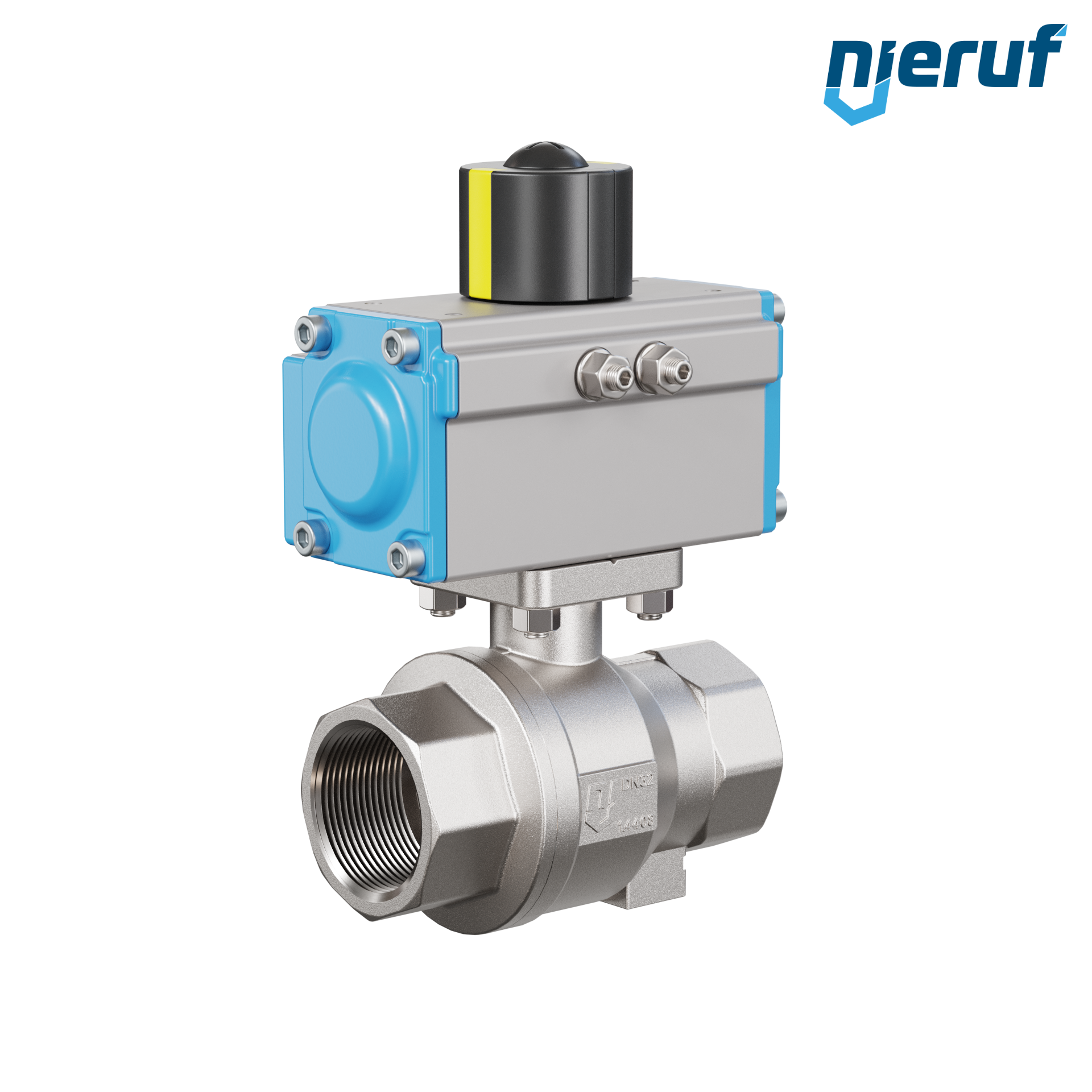 robinet à boisseau sphérique pneumatique DN32 - 1 1/4" pouce acier inoxydable 1.4408 PK02 actionneur rotatif pneumatique GD42 en aluminium (fonctionnement: GD = à double effet)