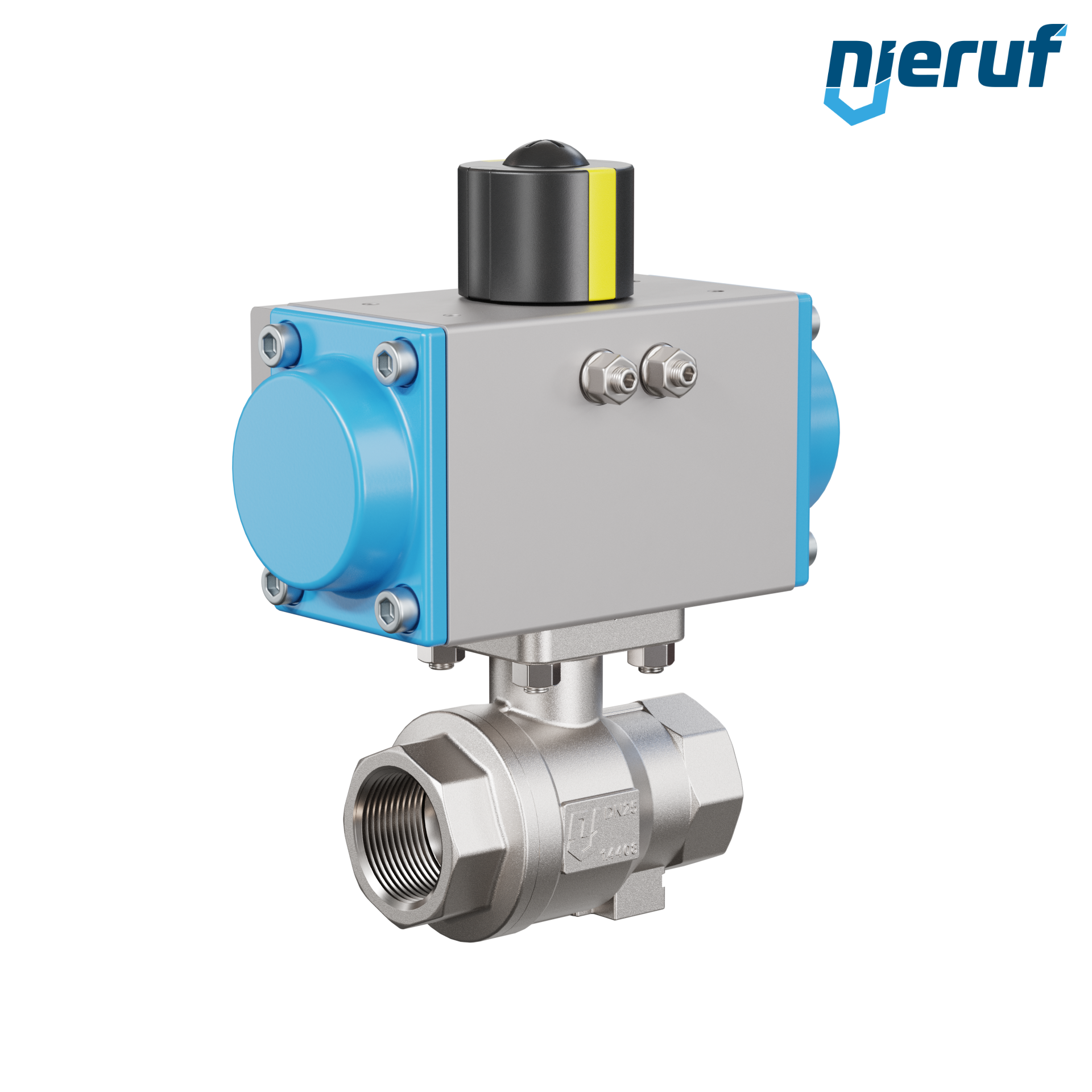 robinet à boisseau sphérique pneumatique DN25 - 1" pouce acier inoxydable 1.4408 PK02 actionneur rotatif pneumatique GS63 en aluminium (fonctionnement: GS = à simple effet)