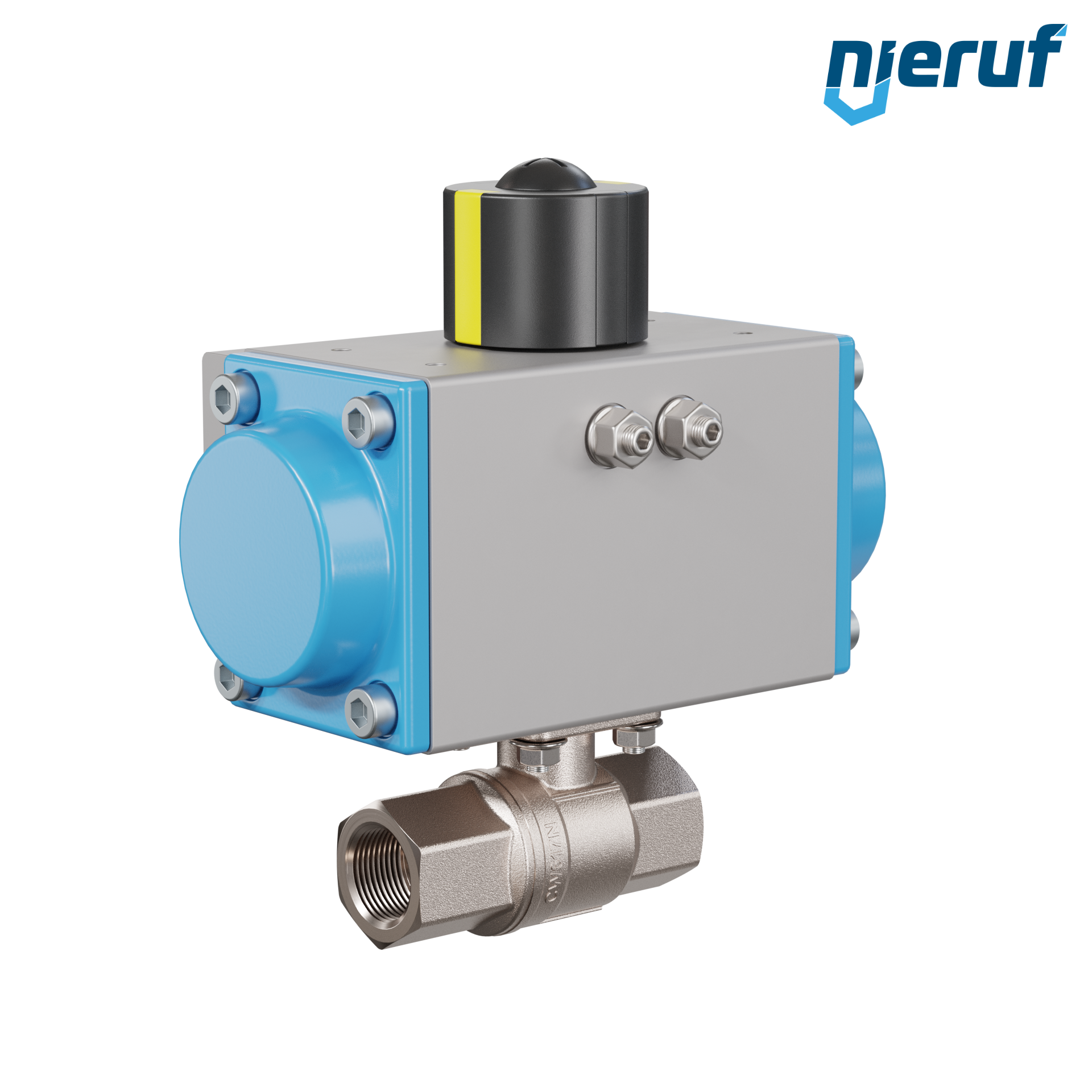 robinet à boisseau sphérique avec manchon automatique DN15 - 1/2" pouce laiton CW617N nickelé PK01 actionneur rotatif pneumatique GS42 en aluminium (fonctionnement: GS = à simple effet - NO)