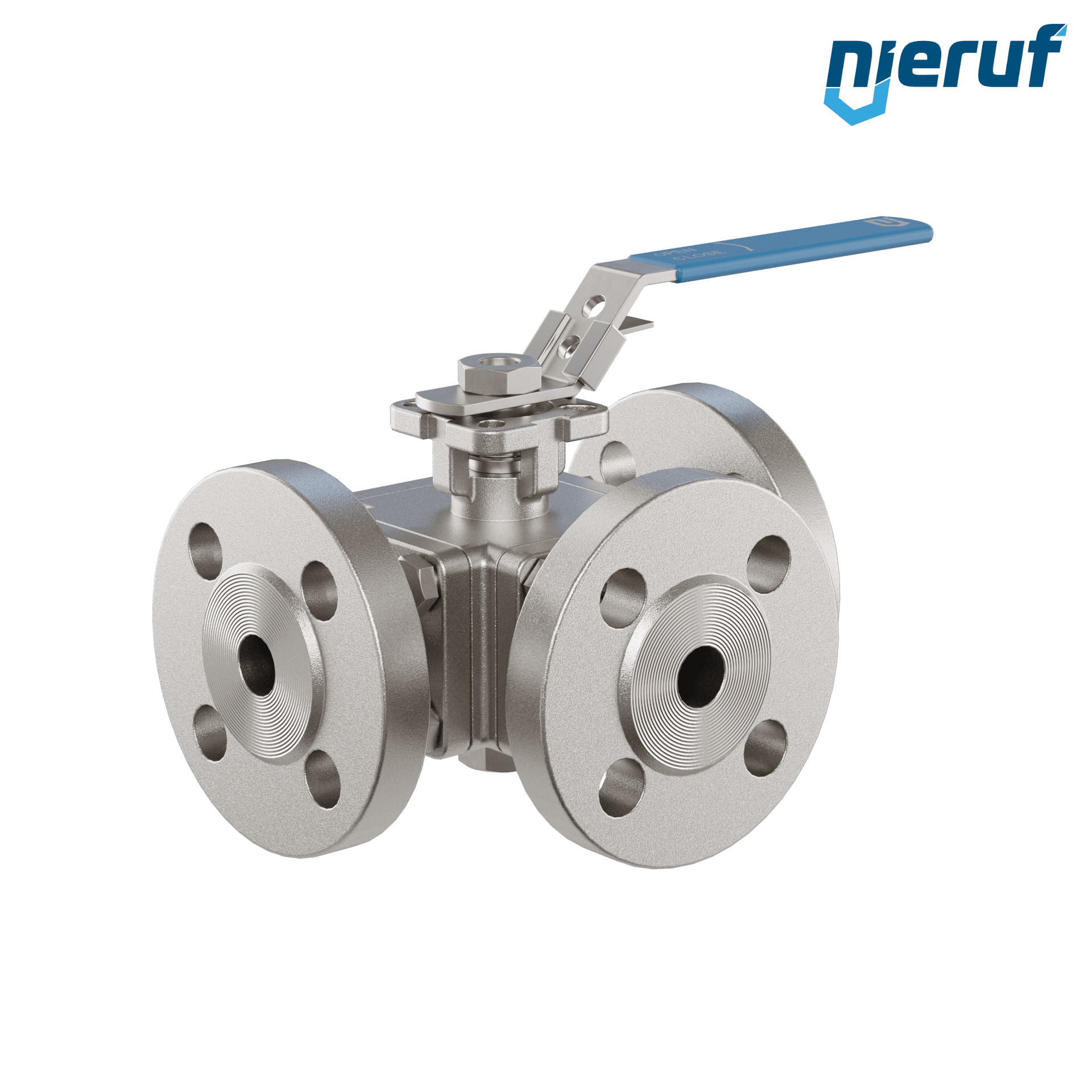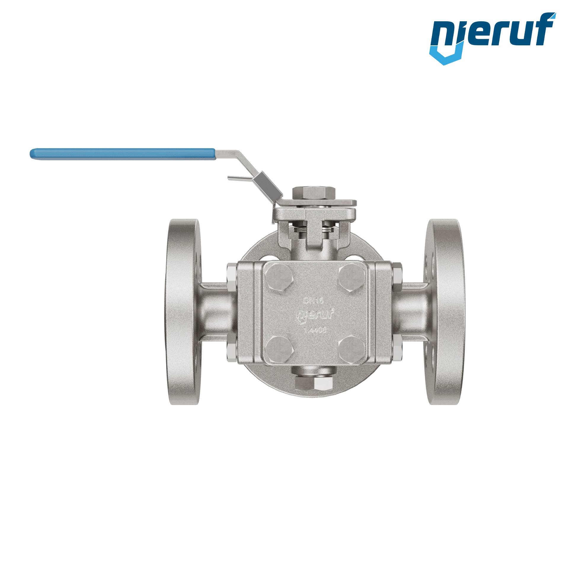 ce robinet à boisseau sphérique à brides à trois voies de haute qualité en acier inoxydable avec couvercle et bride de montage selon la norme DIN ISO 5211 possède les agréments / certificats suivants : PED 97/23 / EG, catégorie 3 module H, TA-air 2002. ce robinet à boisseau sphérique possède une lumière en L (L1).