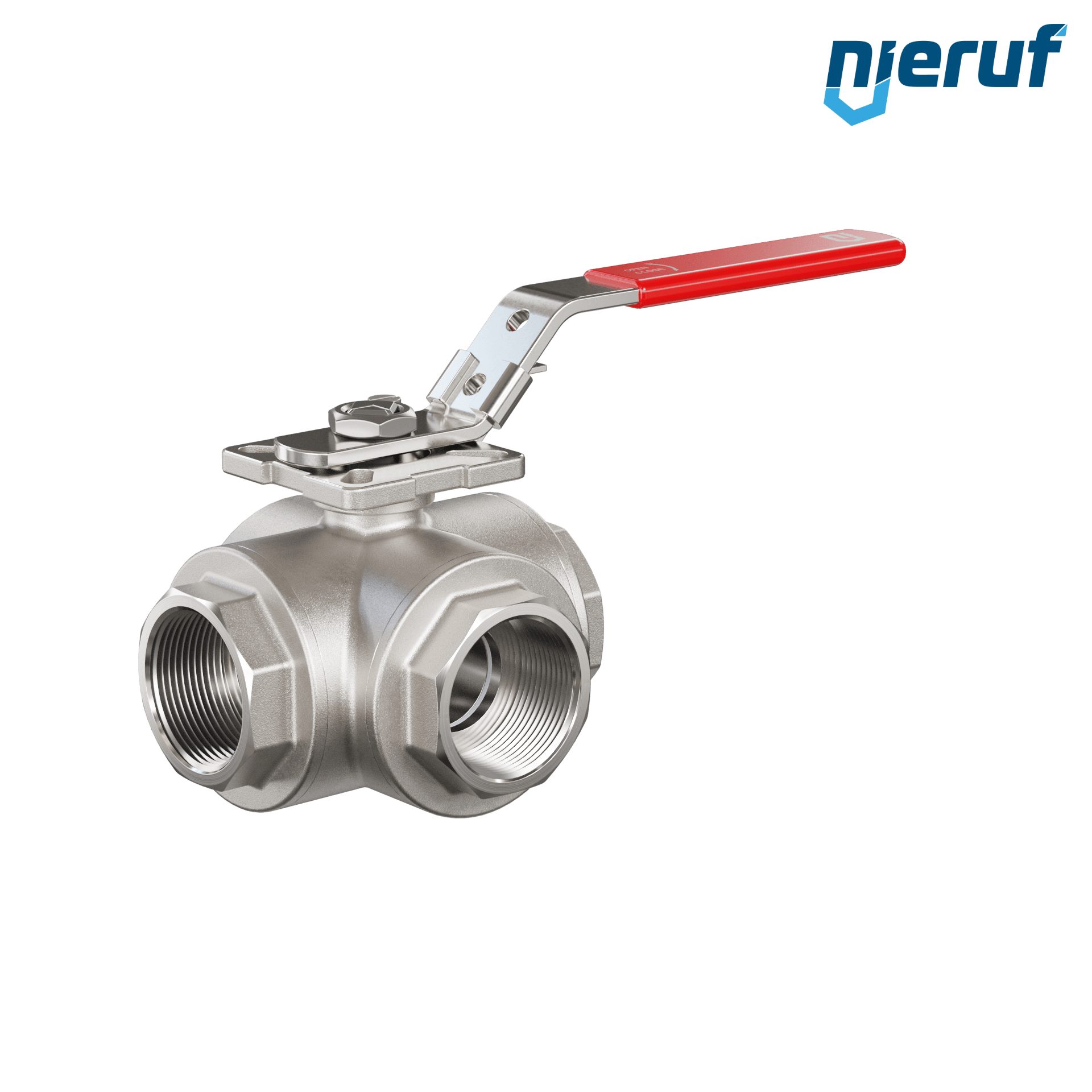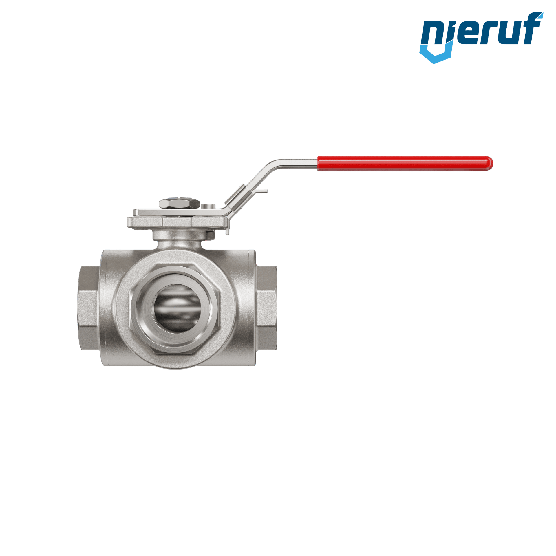 robinet à boisseau sphérique 3 voies DN40 - 1 1/2" pouce GK09 acier inoxydable avec lumière en L