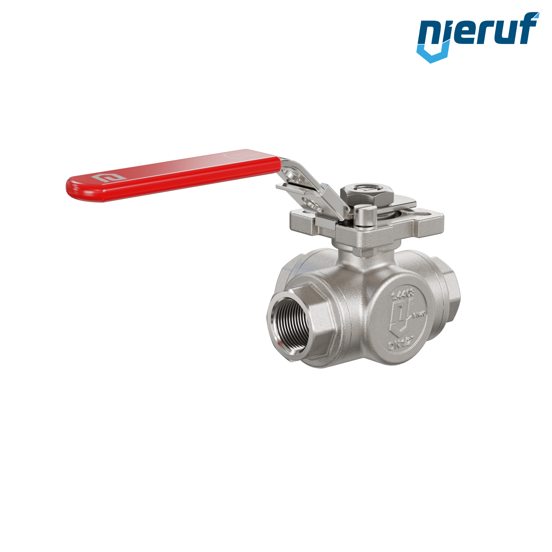 robinet à boisseau sphérique 3 voies DN15 - 1/2" pouce GK09 acier inoxydable avec lumière en T
