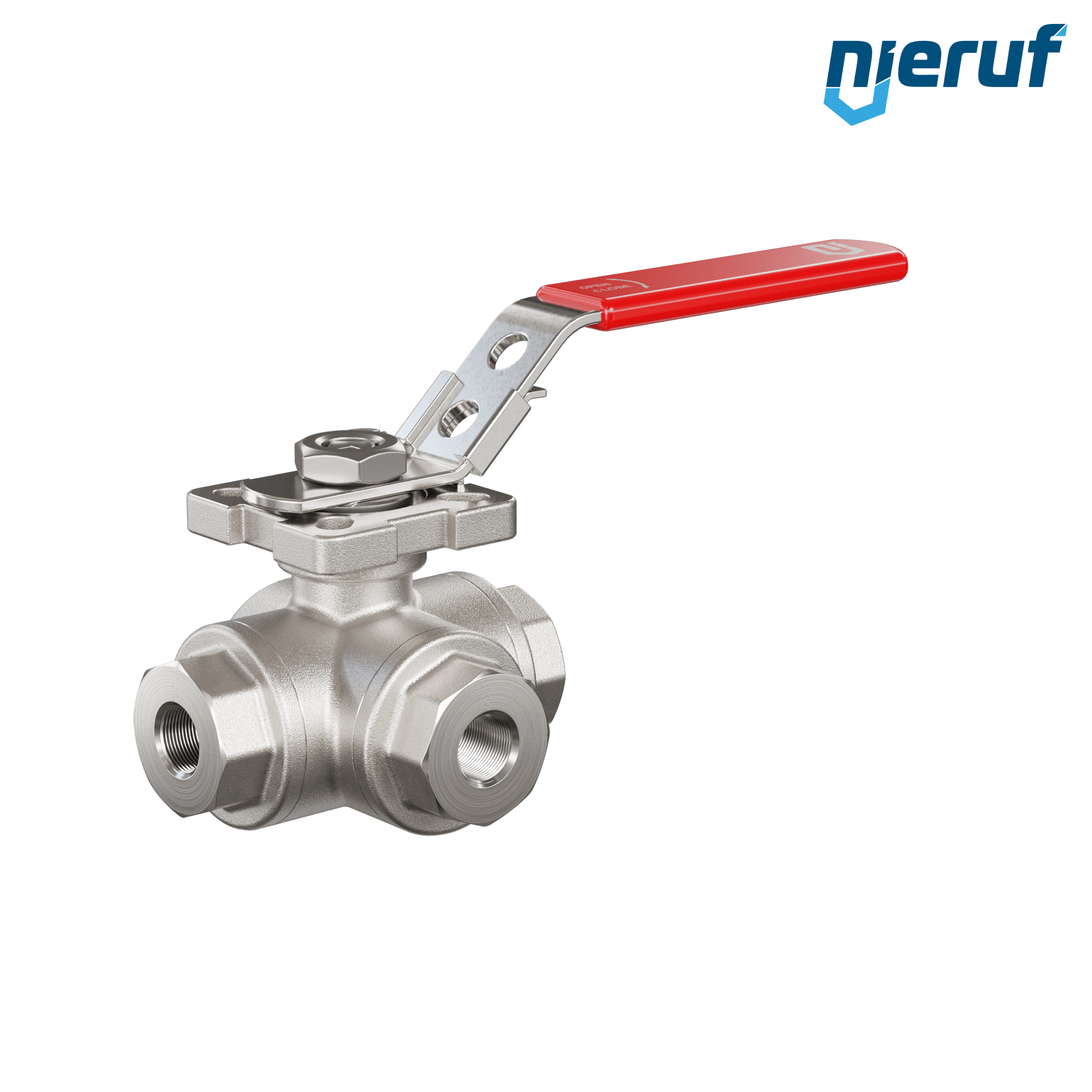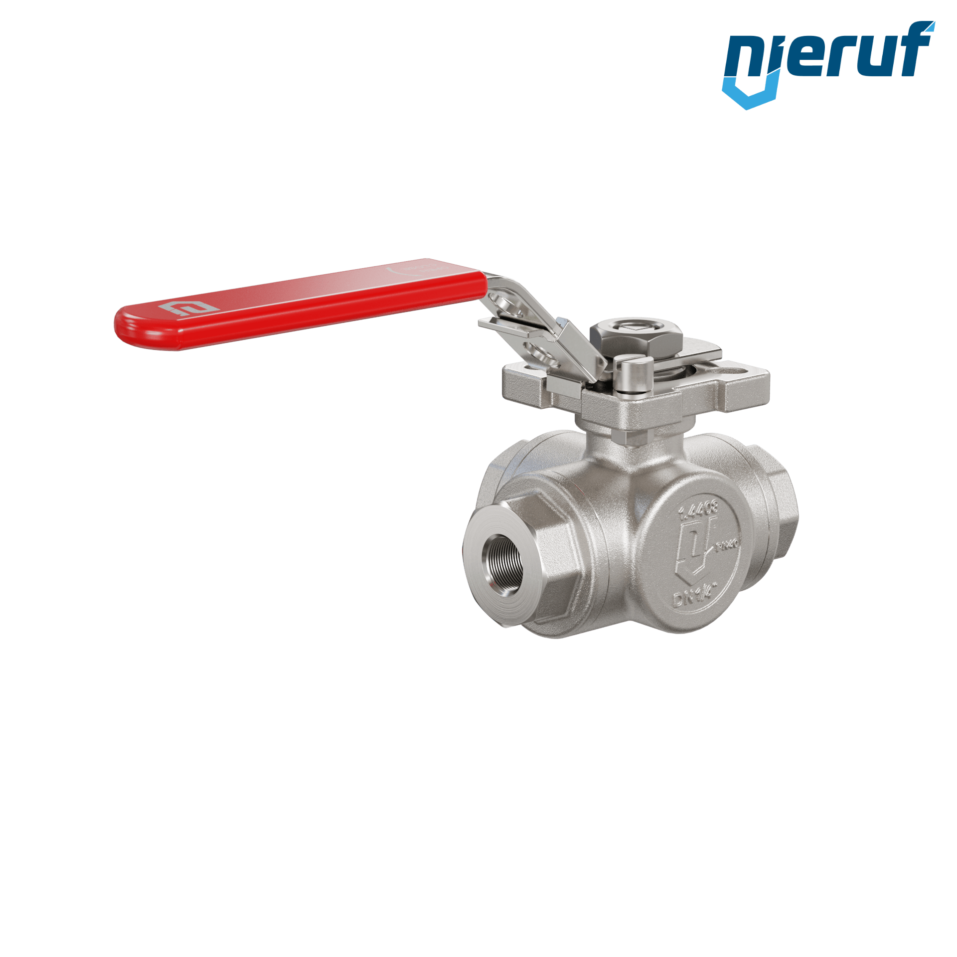 robinet à boisseau sphérique 3 voies DN8 - 1/4" pouce GK09 acier inoxydable avec lumière en L