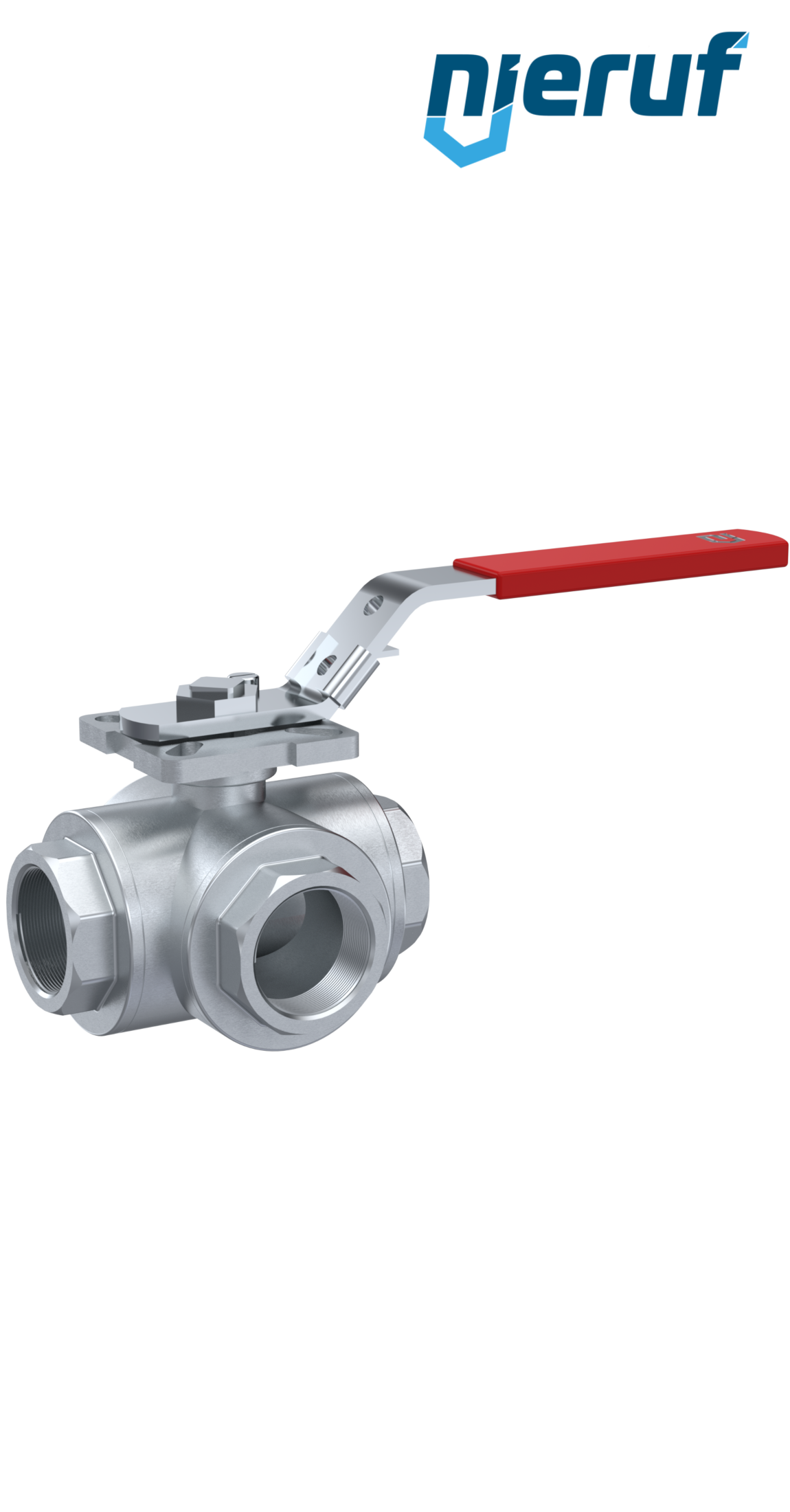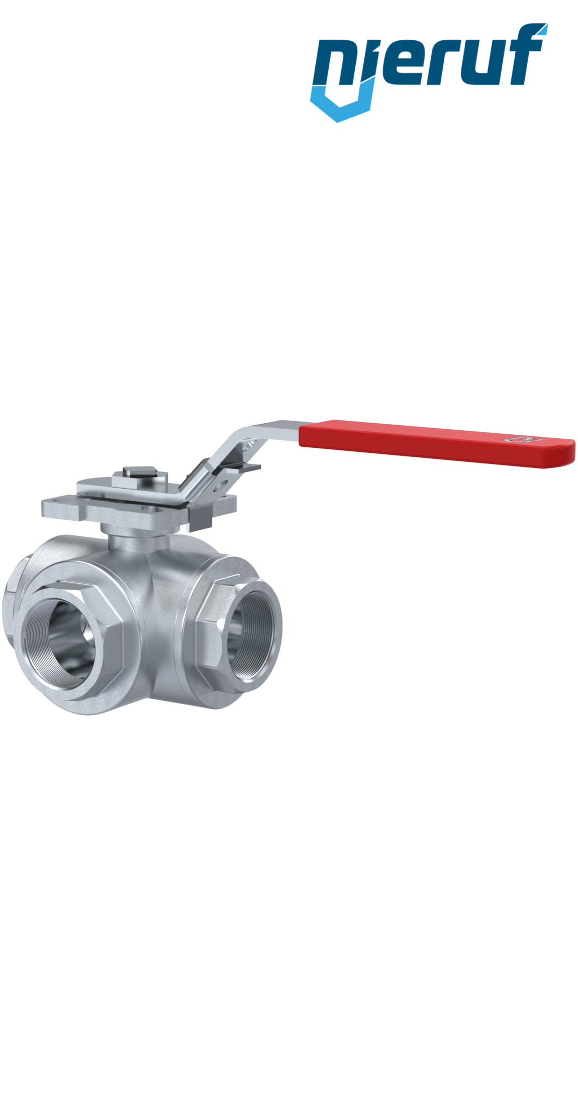 robinet à boisseau sphérique 3 voies DN50 - 2" pouce GK09 acier inoxydable avec lumière en T