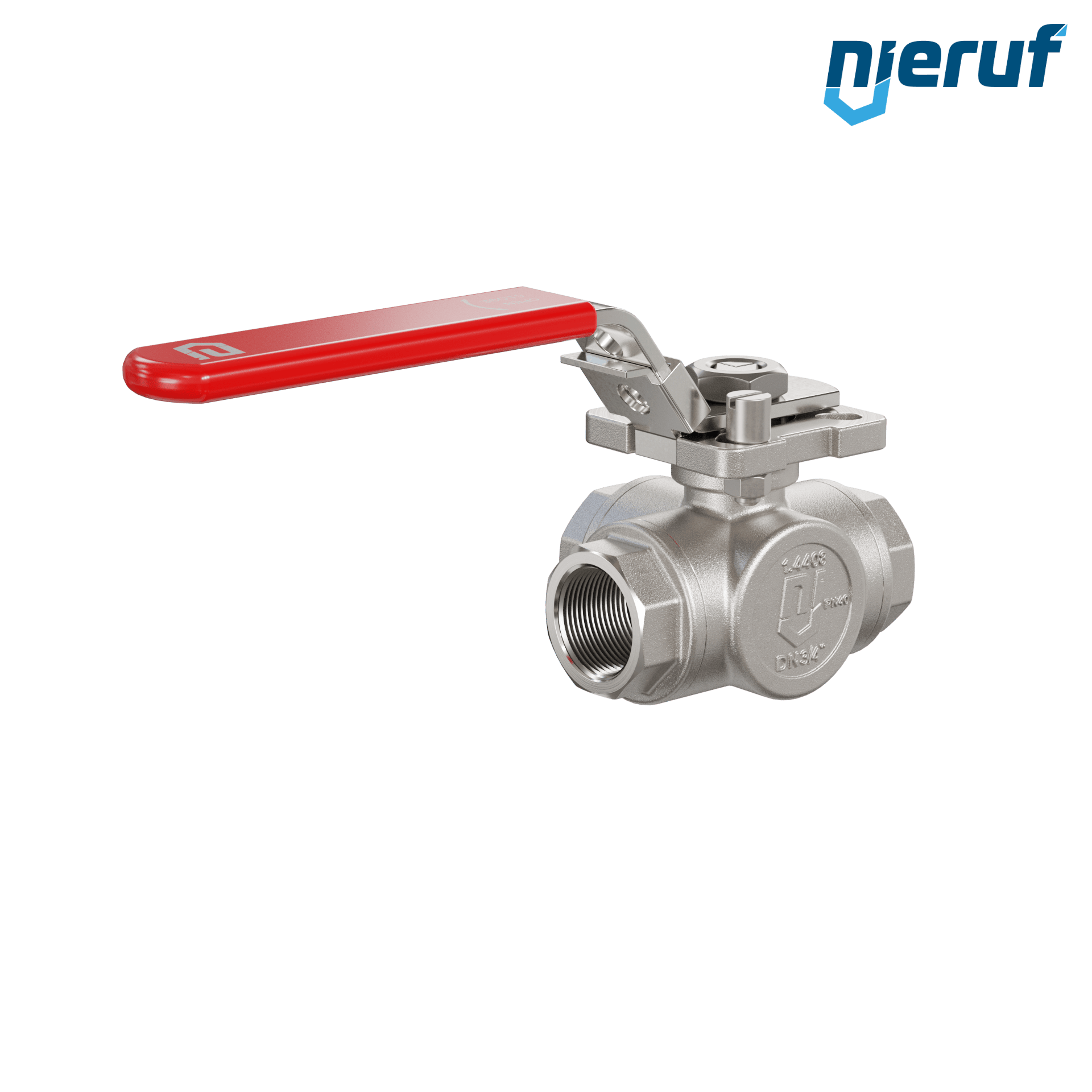 robinet à boisseau sphérique 3 voies DN20 - 3/4" pouce GK09 acier inoxydable avec lumière en L