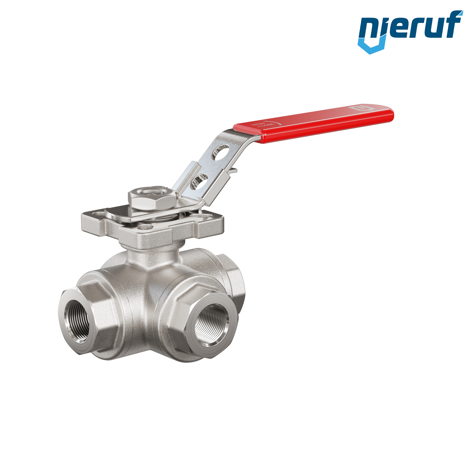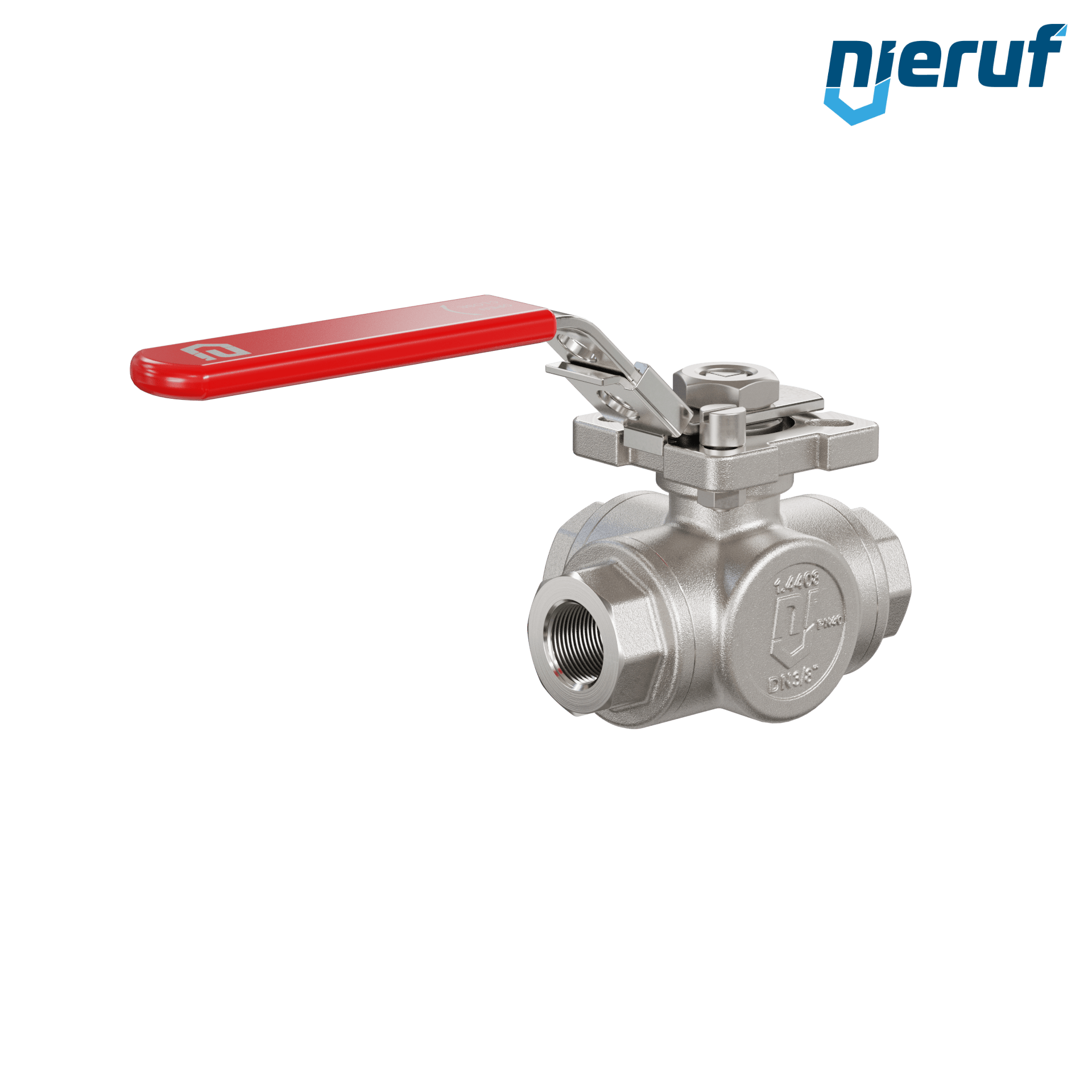 robinet à boisseau sphérique 3 voies DN10 - 3/8" pouce GK09 acier inoxydable avec lumière en L