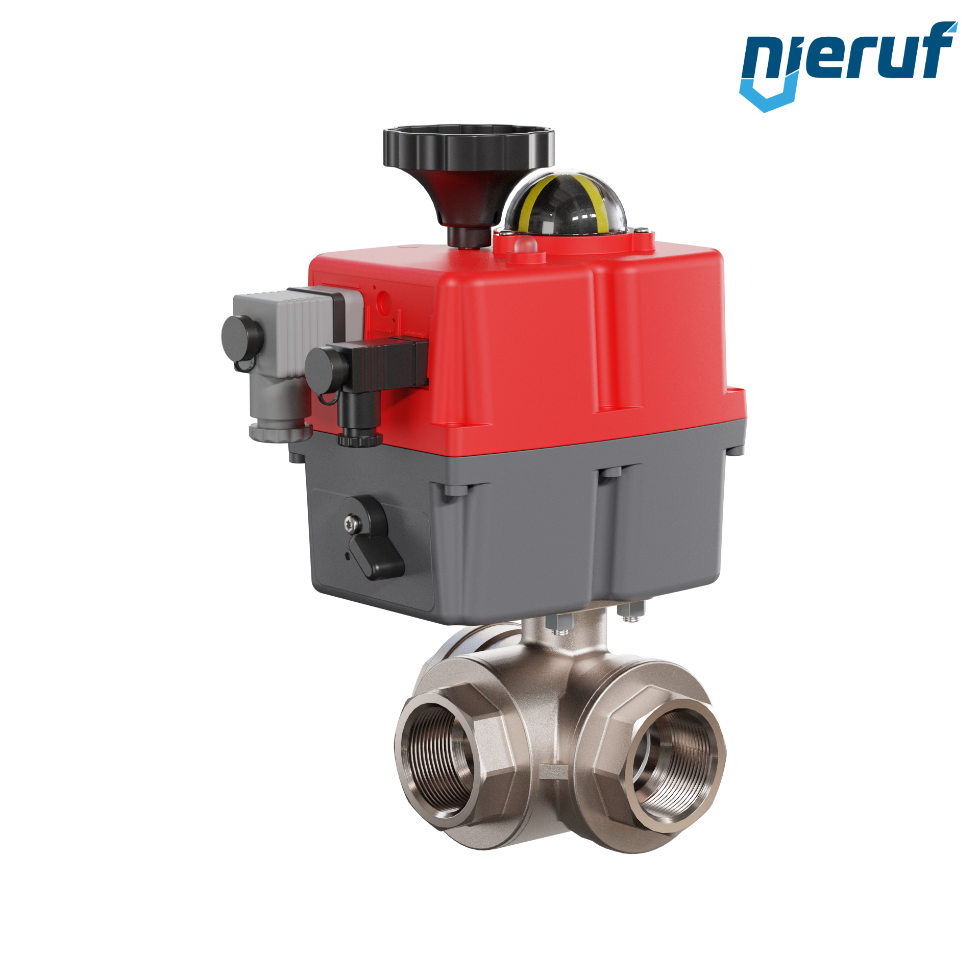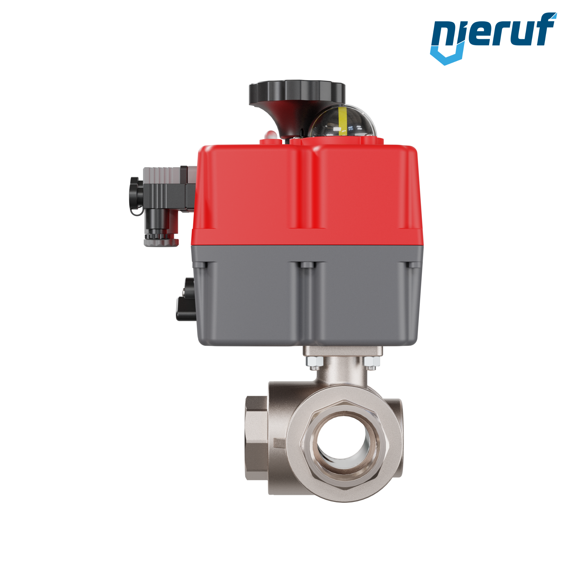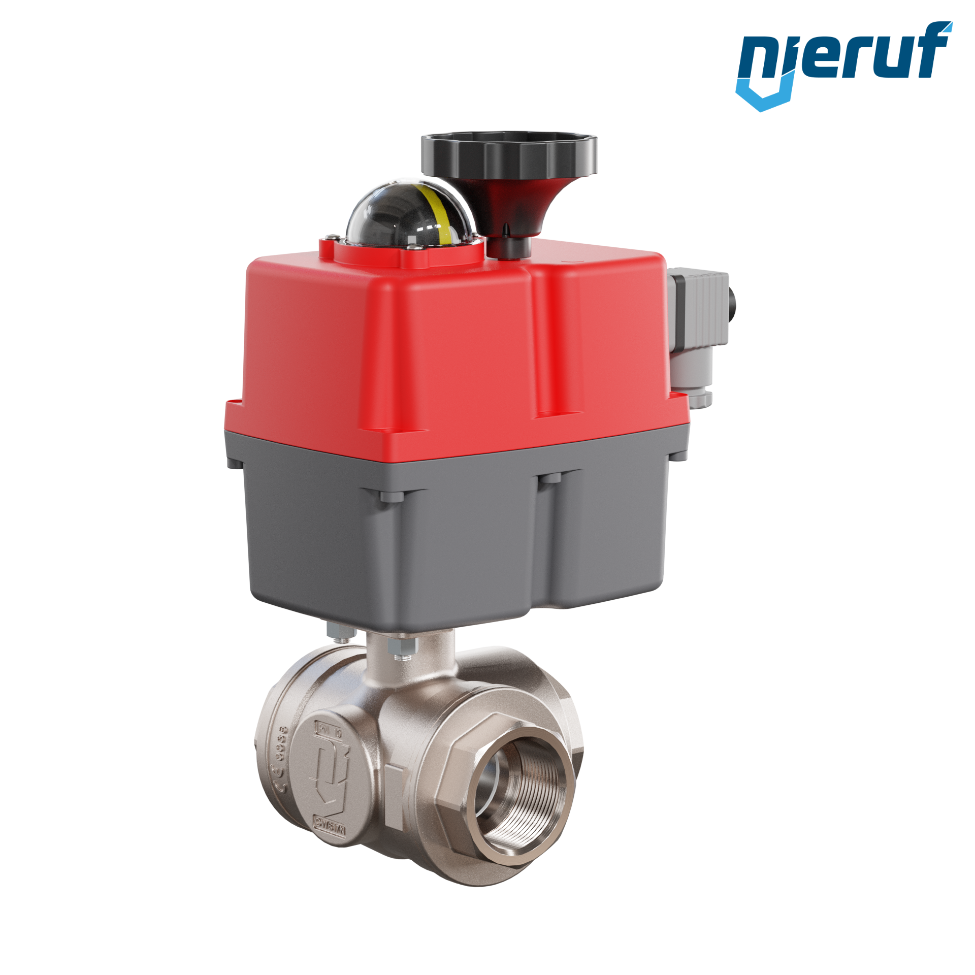robinet à boisseau sphérique 3 voies àctionneur électrique 24-240V DN32 - 1 1/4" pouce en laiton MS 58 nickelé (CW617N) à passage intégral avec lumière en T pour fluides liquides et gazeux