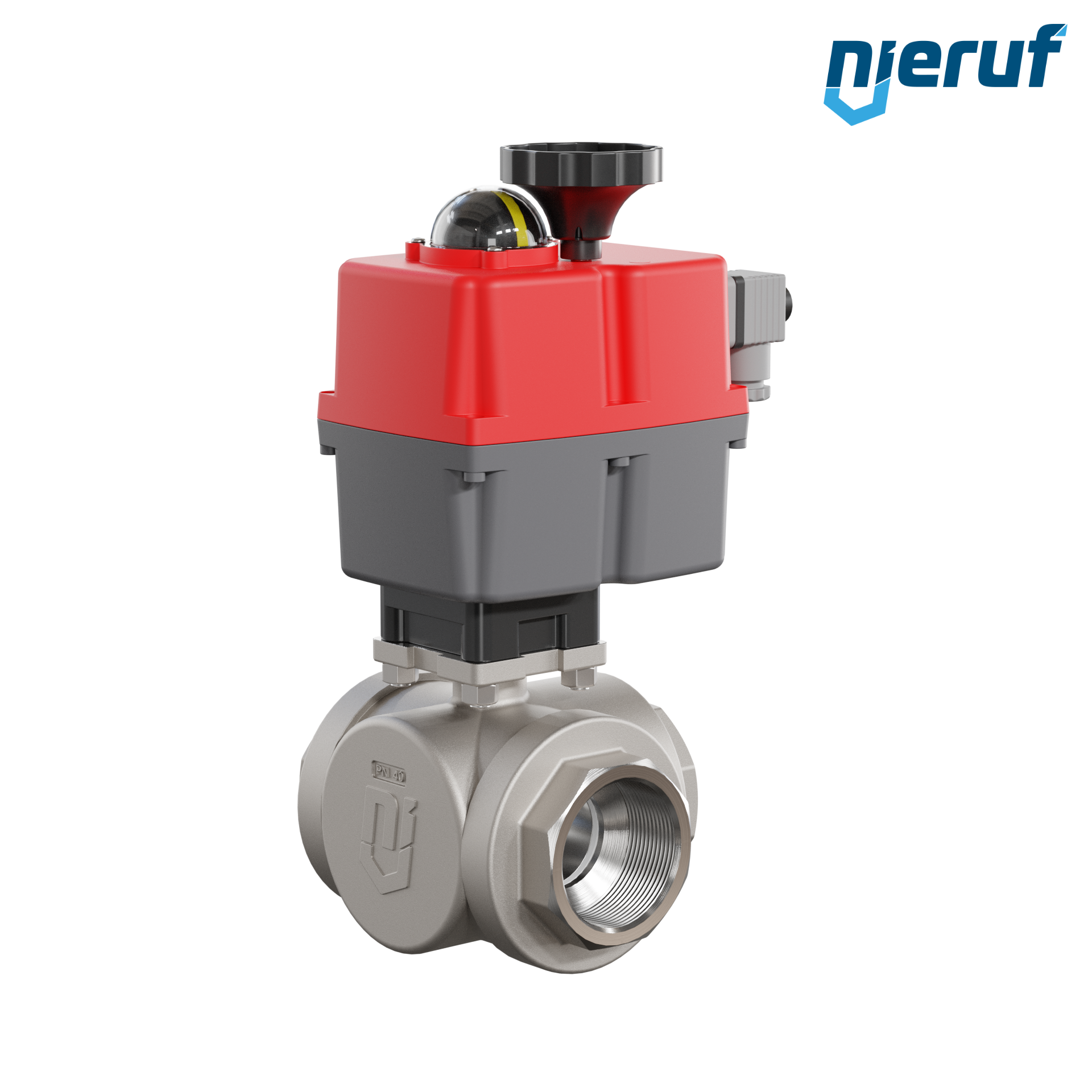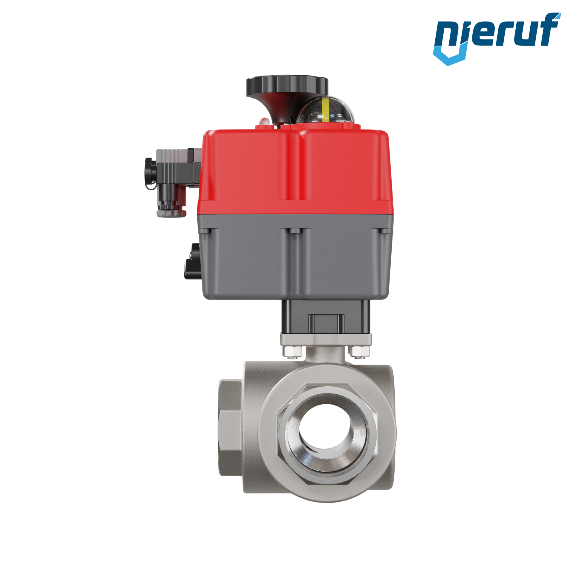 robinet à boisseau sphérique 3 voies avec actionneur électrique 24-240V DN50 - 2" pouce acier inoxydable à passage réduit avec lumière en T