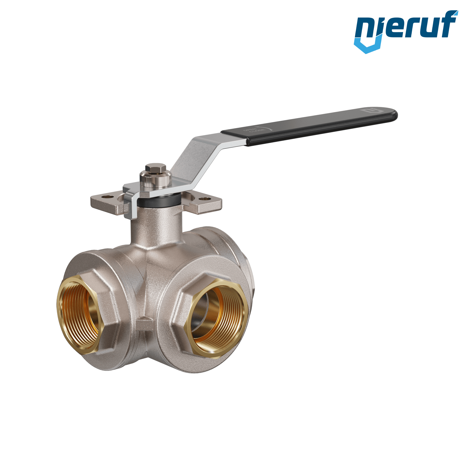 robinet à boisseau sphérique 3 voies en laiton DN40 - 1 1/2" pouce GK08 passage intégral avec lumière en L