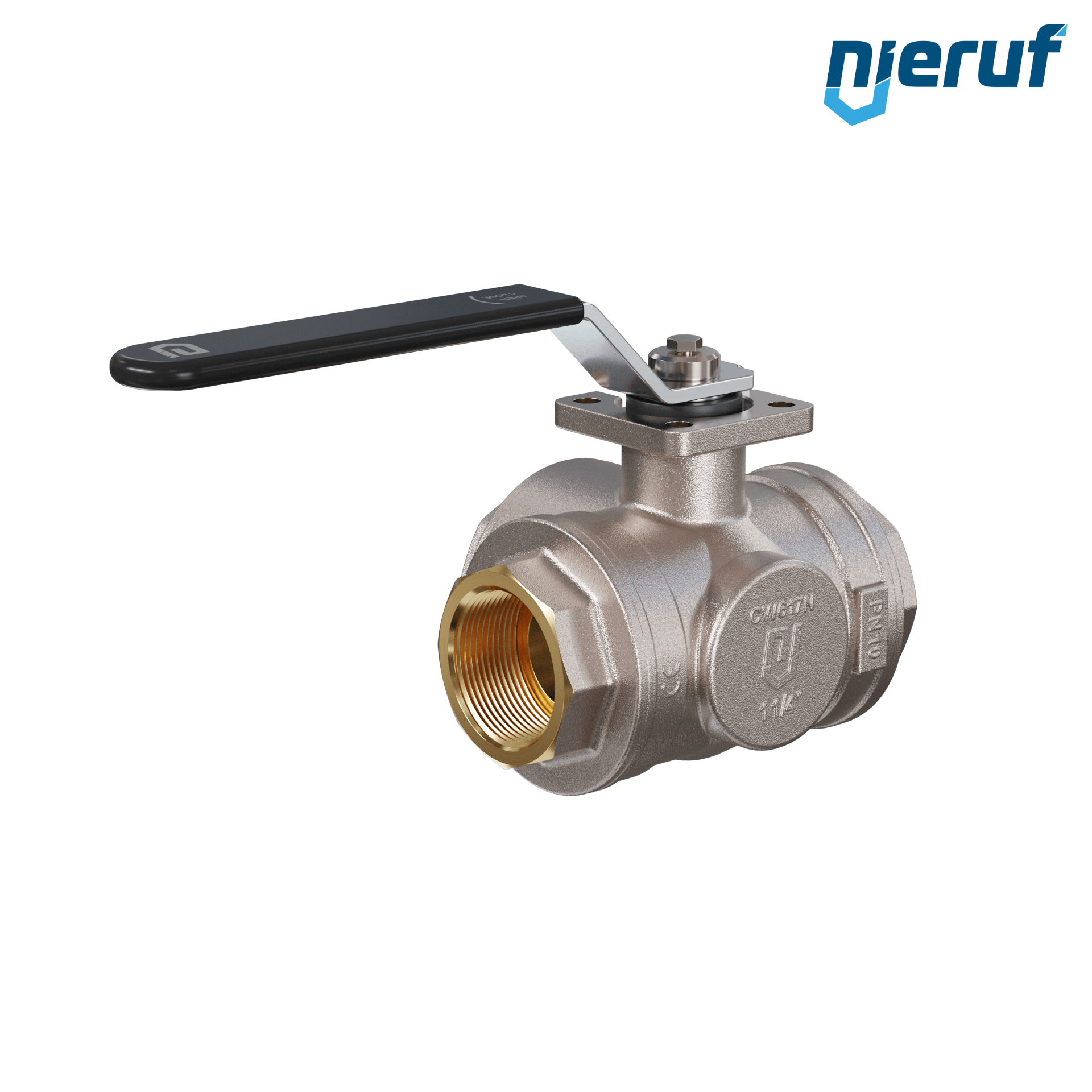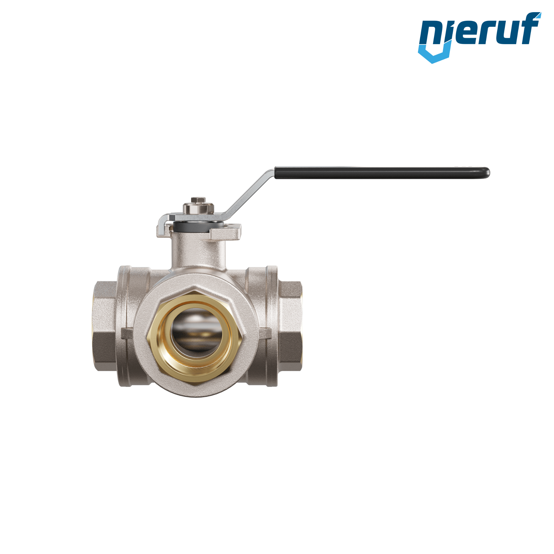 robinet à boisseau sphérique 3 voies en laiton DN32 - 1 1/4" pouce GK08 passage intégral avec lumière en T