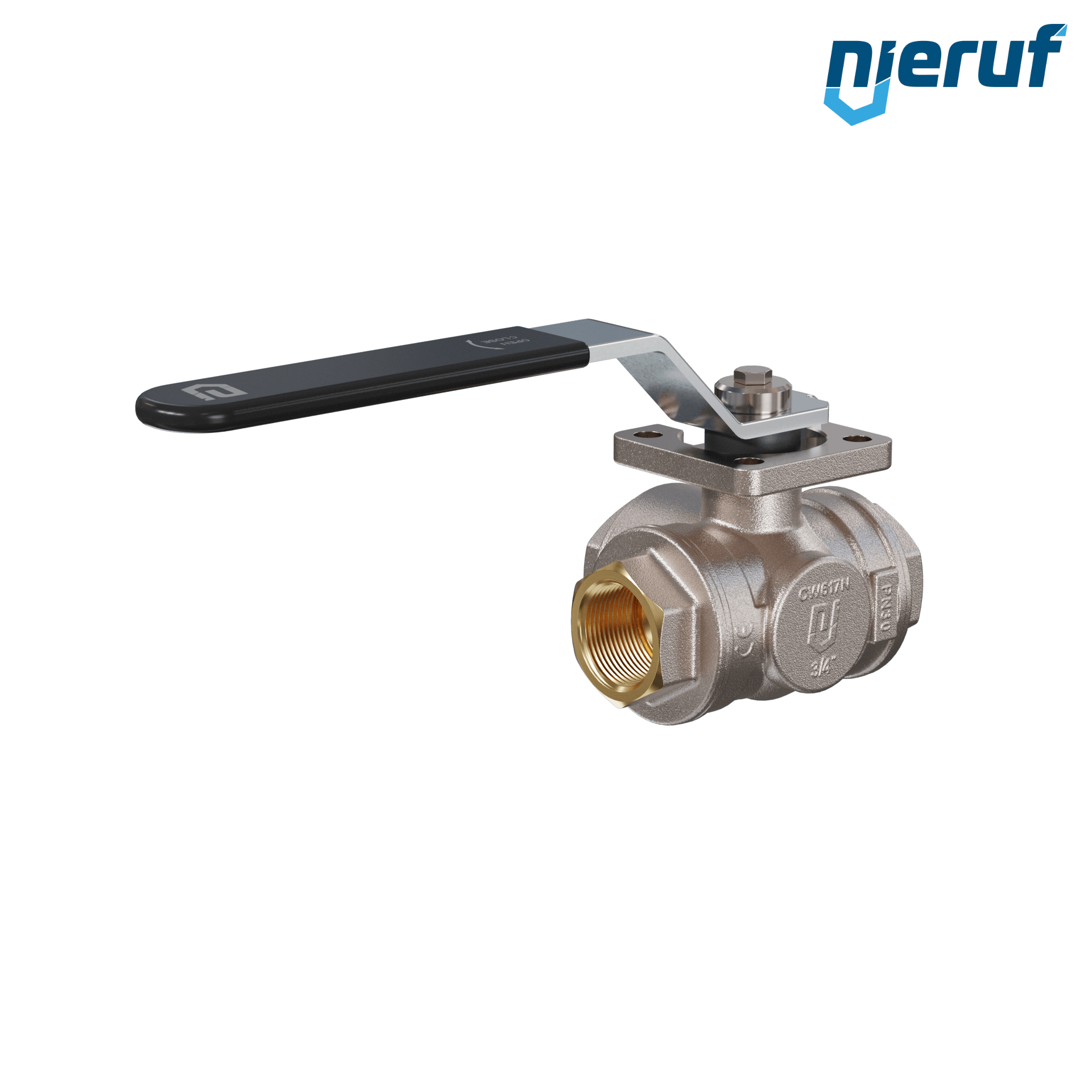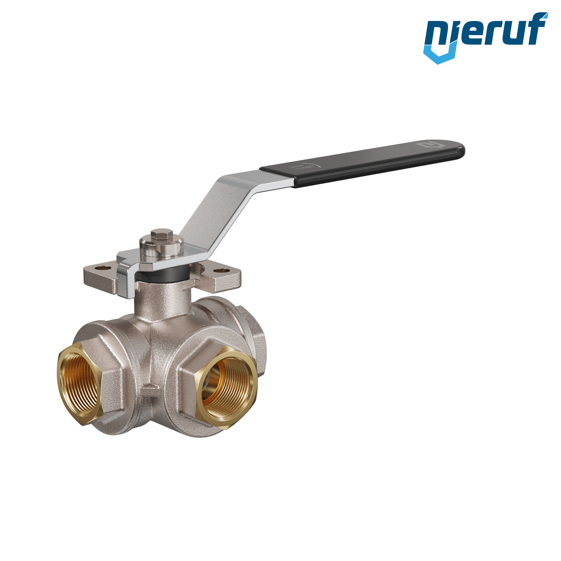 robinet à boisseau sphérique 3 voies en laiton DN20 - 3/4" pouce GK08 passage intégral avec lumière en L