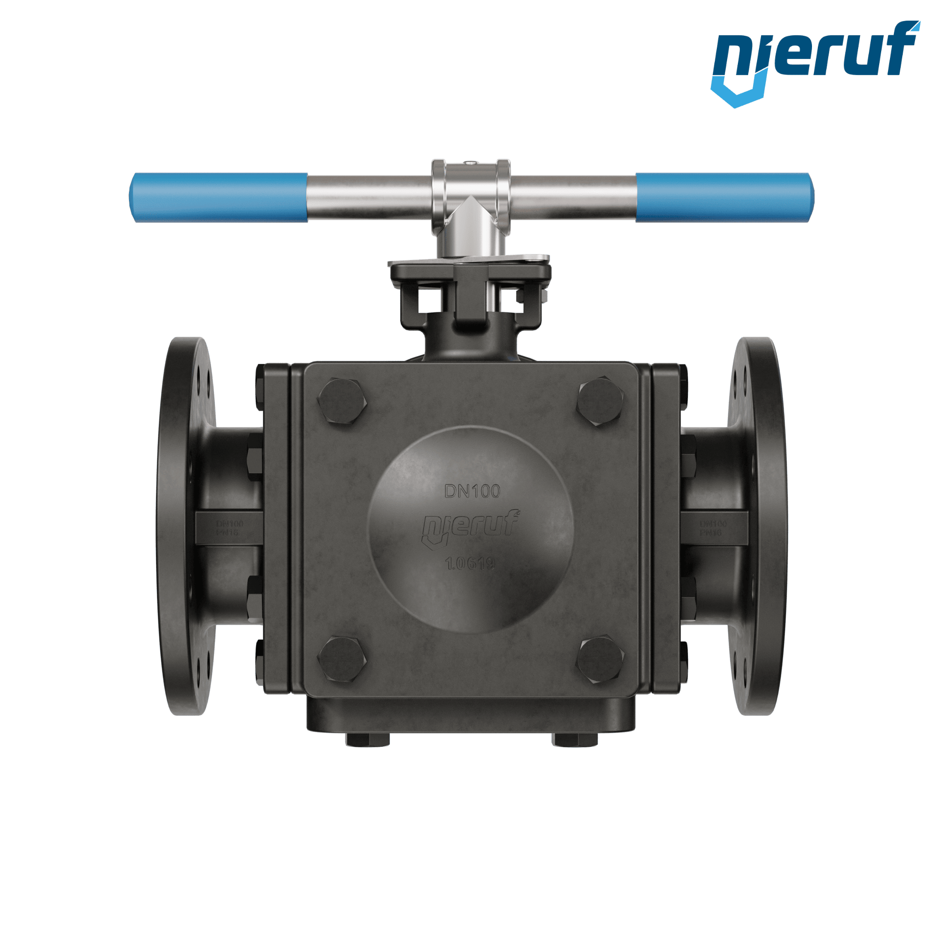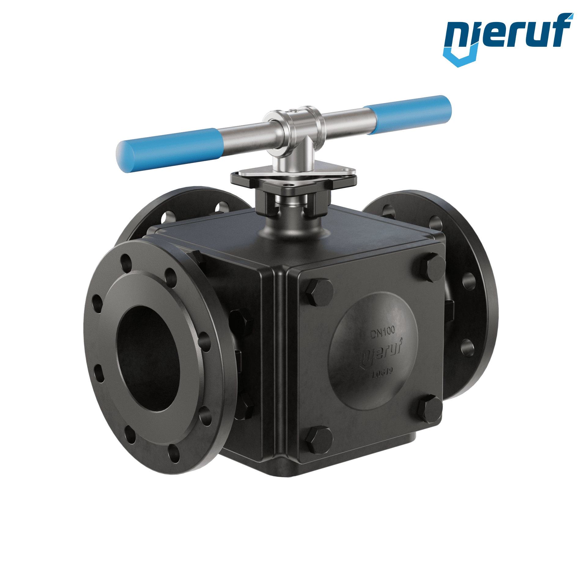 robinet à boisseau sphérique à brides 3 voies DN100 PN16 FK08 corps en acier moulé 1.0619 sphère en acier moulé 1.4308 joint TFM 1600 / PTFE lumière en T