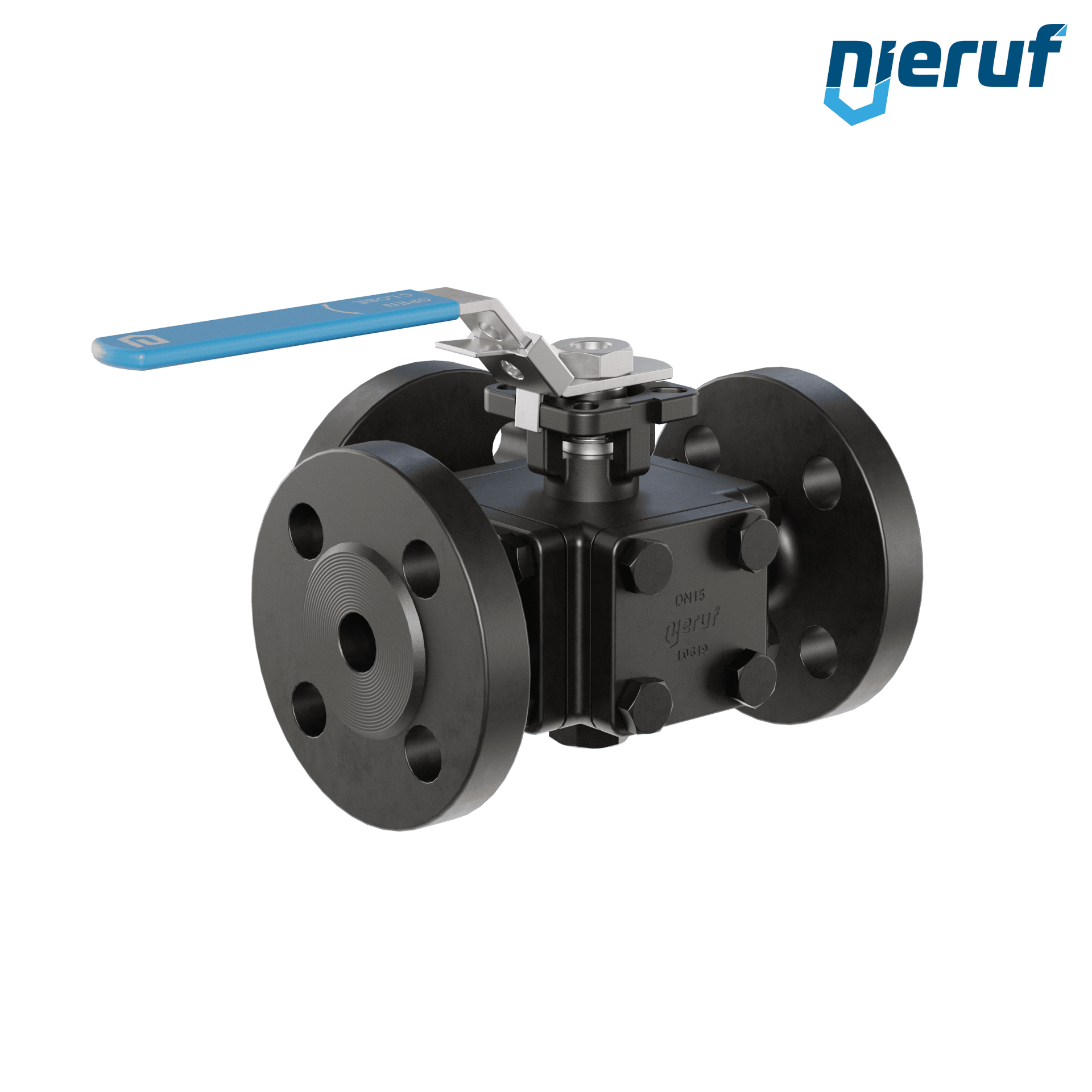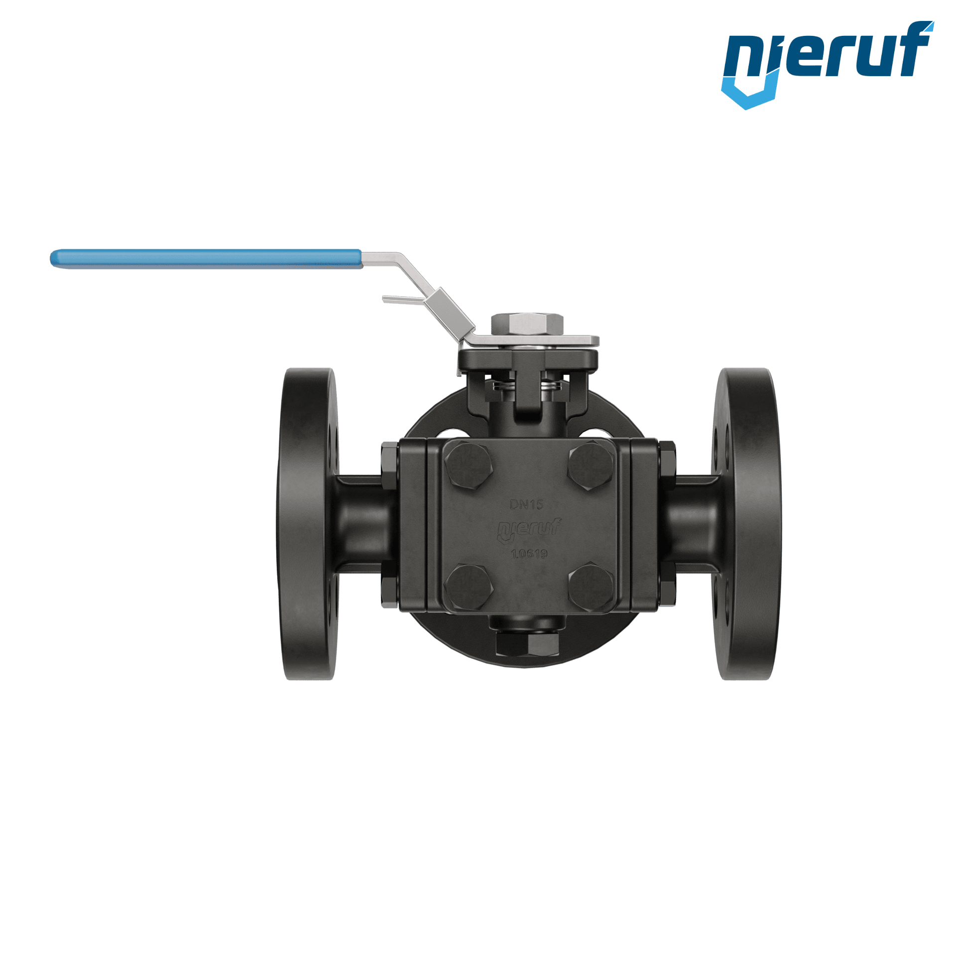 ce robinet à boisseau sphérique à brides à trois voies de haute qualité, en acier moulé, avec couvercle et bride de montage selon la norme DIN ISO 5211, possède les homologations / certificats suivants : PED 97/23 / EG, catégorie 3 module H, TA-air 2002. ce robinet à boisseau sphérique possède une lumière en L (L1).