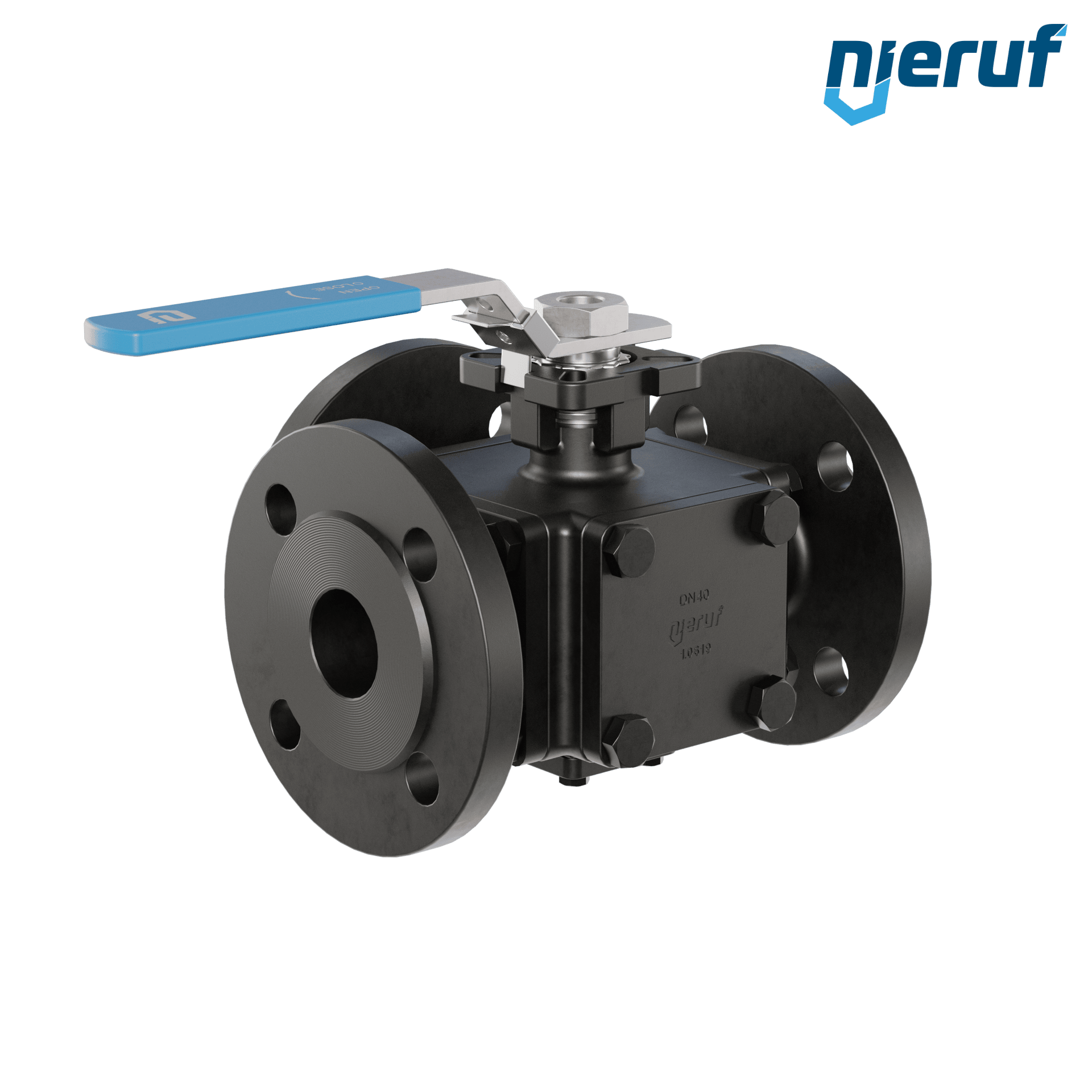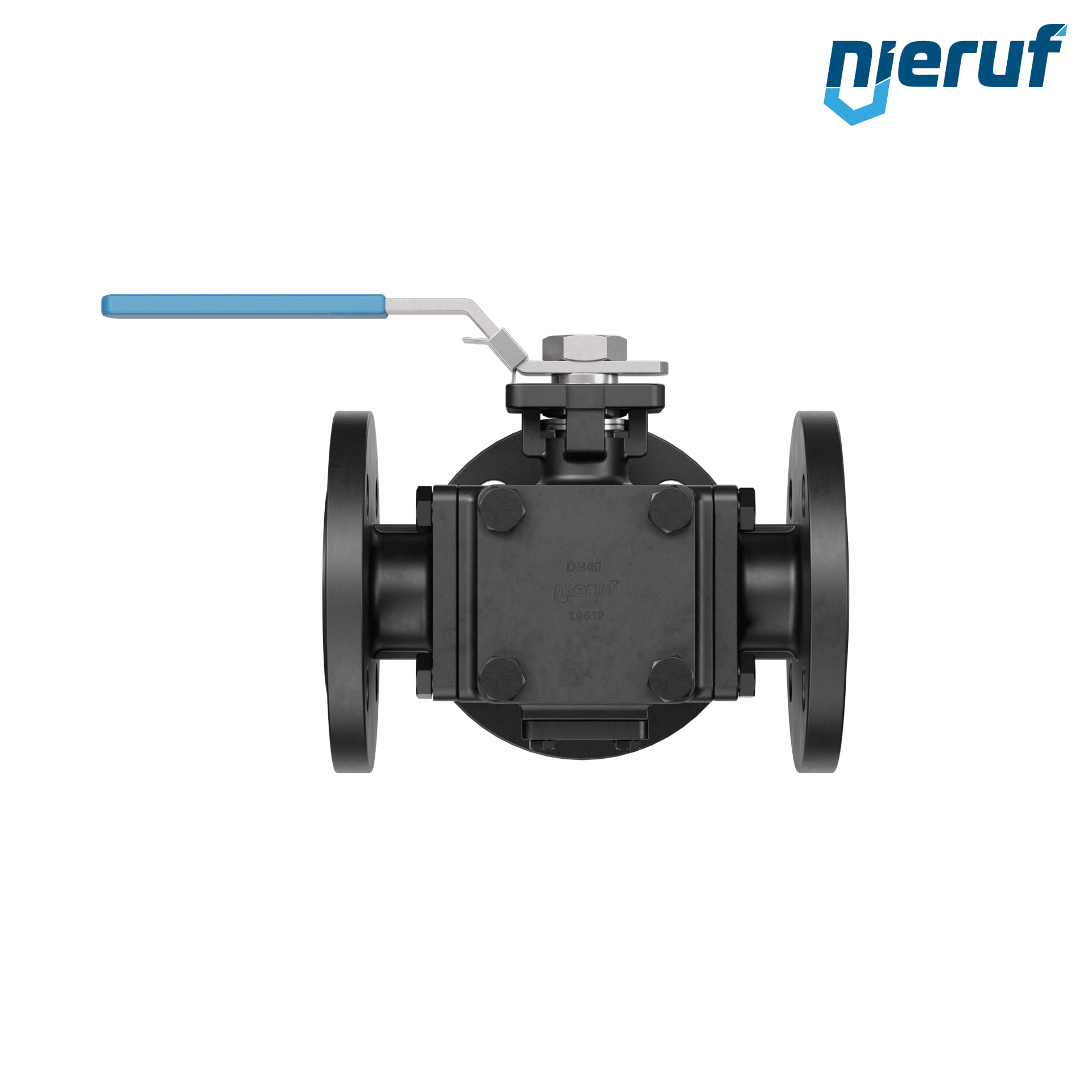 robinet à boisseau sphérique à brides 3 voies DN40 PN16/40 FK08 corps en acier moulé 1.0619 sphère en acier moulé 1.4308 joint TFM 1600 / PTFE lumière en L