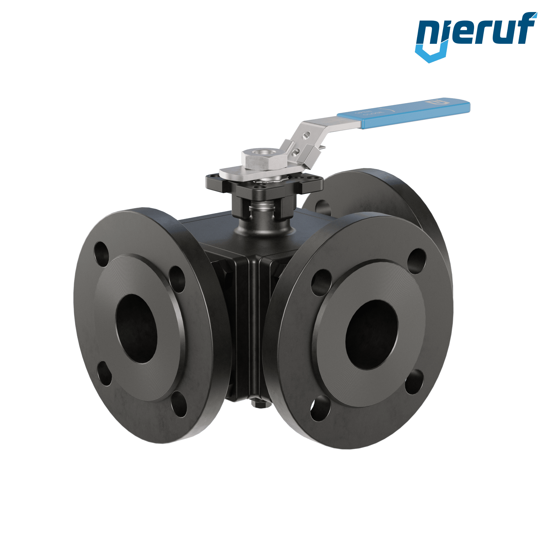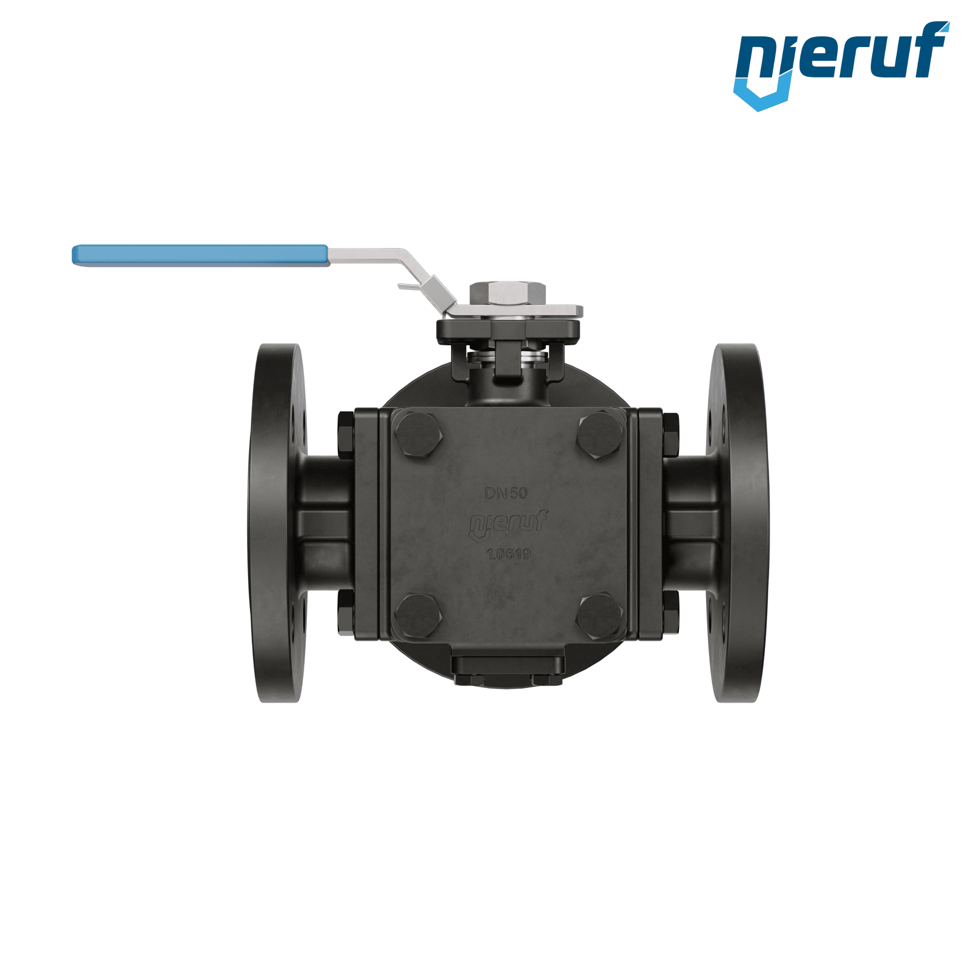 robinet à boisseau sphérique à brides 3 voies DN50 PN16/40 FK08 corps en acier moulé 1.0619 sphère en acier moulé 1.4308 joint TFM 1600 / PTFE lumière en T
