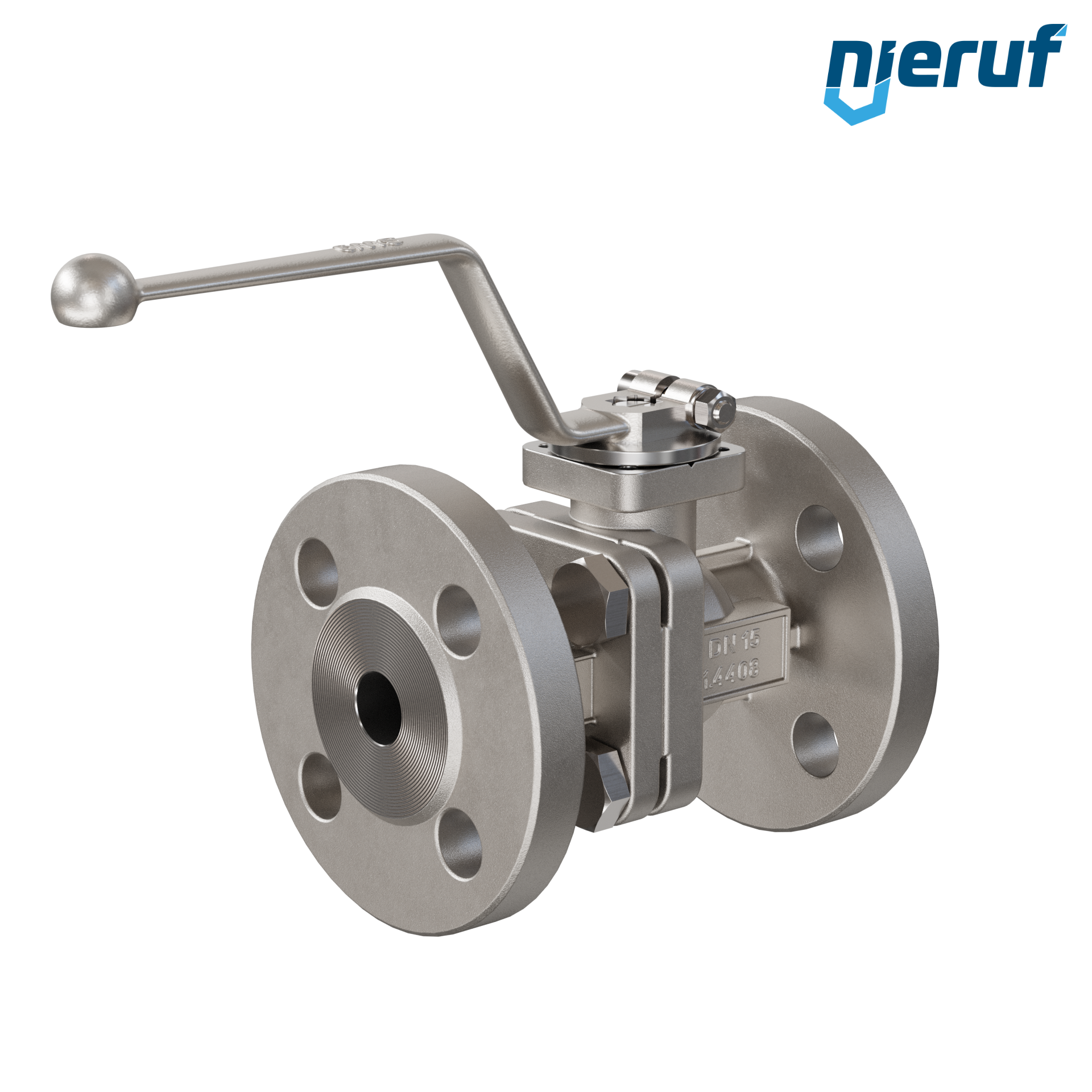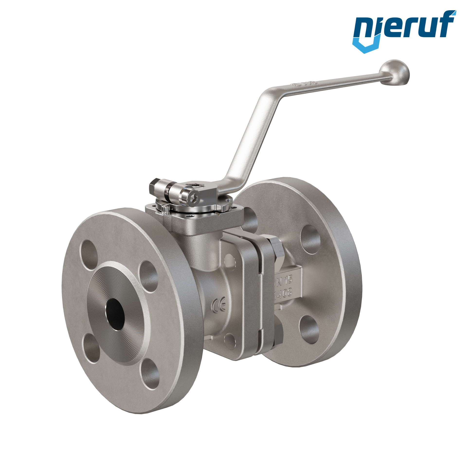 robinet à boisseau sphérique à brides pour vapeur d'eau DN15 PN16 FK05 corps en acier inoxydable 1.4408 sphère en acier inoxydable 1.4408 joint PTFE / TFM pour fluides gazeux comme la vapeur d'eau