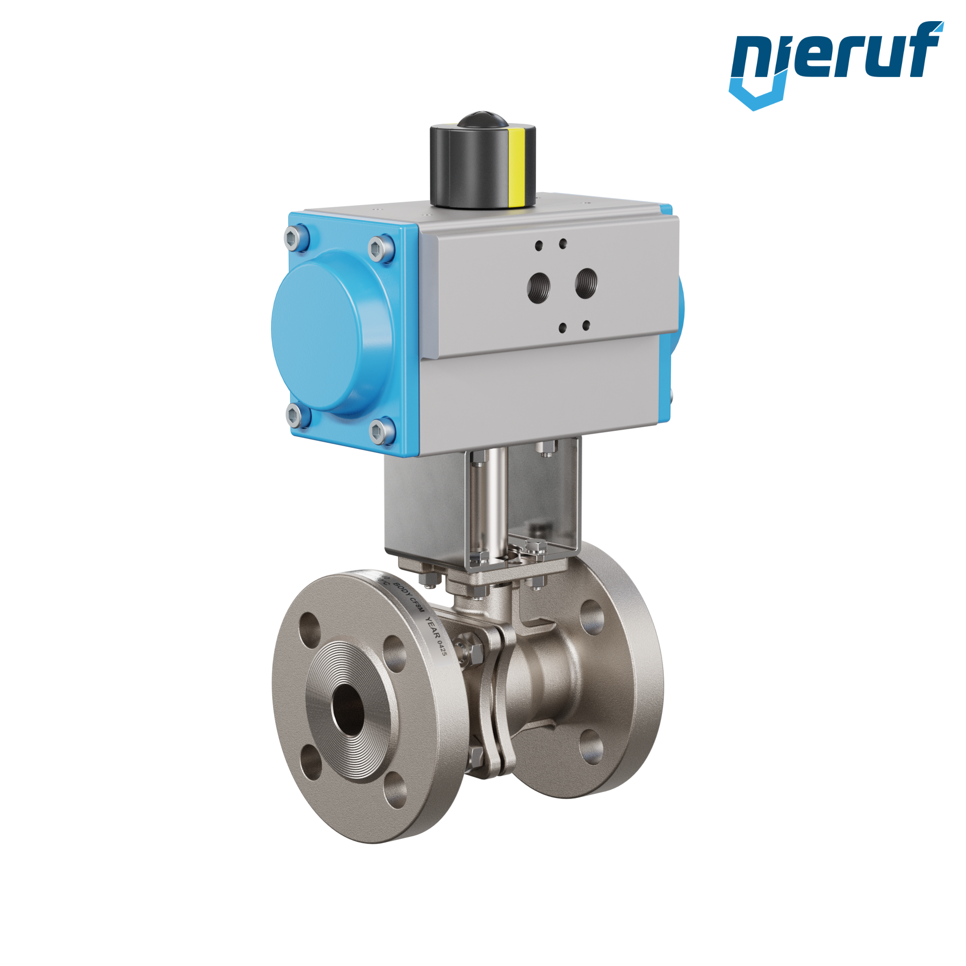 robinet à boisseau sphérique à brides DN20 acier inoxydable 1.4408 PK05 actionneur rotatif pneumatique GS063 en aluminium (fonctionnement: GS = à simple effet)