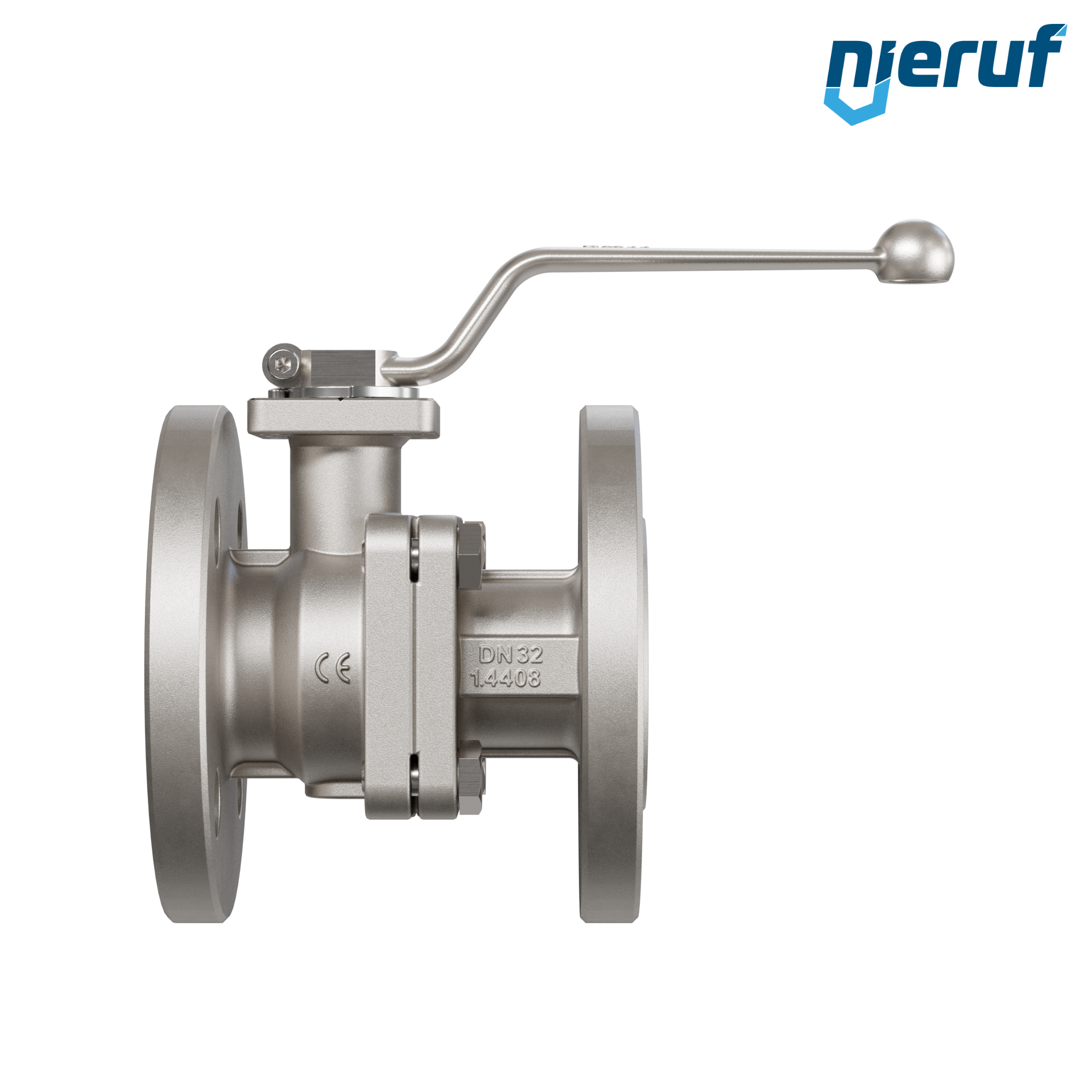 robinet à boisseau sphérique à brides pour vapeur d'eau DN32 PN16 FK05 corps en acier inoxydable 1.4408 sphère en acier inoxydable 1.4408 joint PTFE / TFM pour fluides gazeux comme la vapeur d'eau
