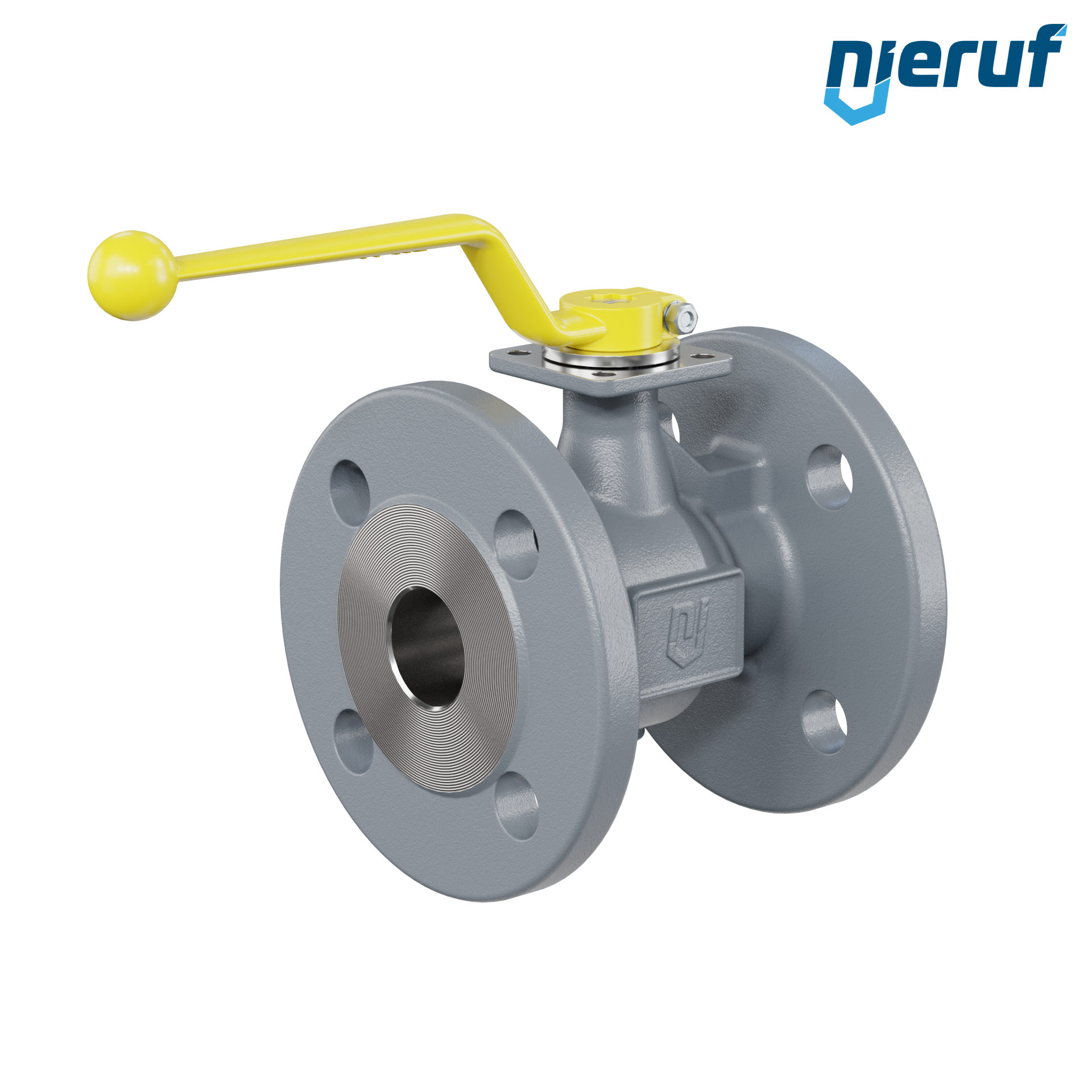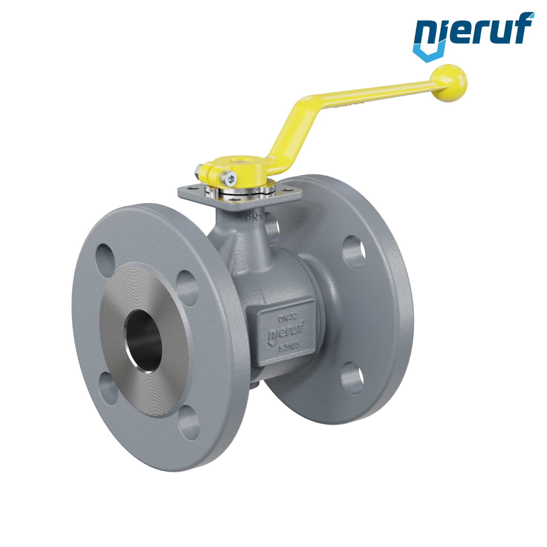 ce robinet à boisseau sphérique de haute qualité en fonte à graphite sphéroïdal avec conception de protection contre l'incendie se compose d'un corps en deux parties, la sphère est en acier inoxydable et dispose d'un raccordement à bride selon la norme DIN EN 1092-2 B1.