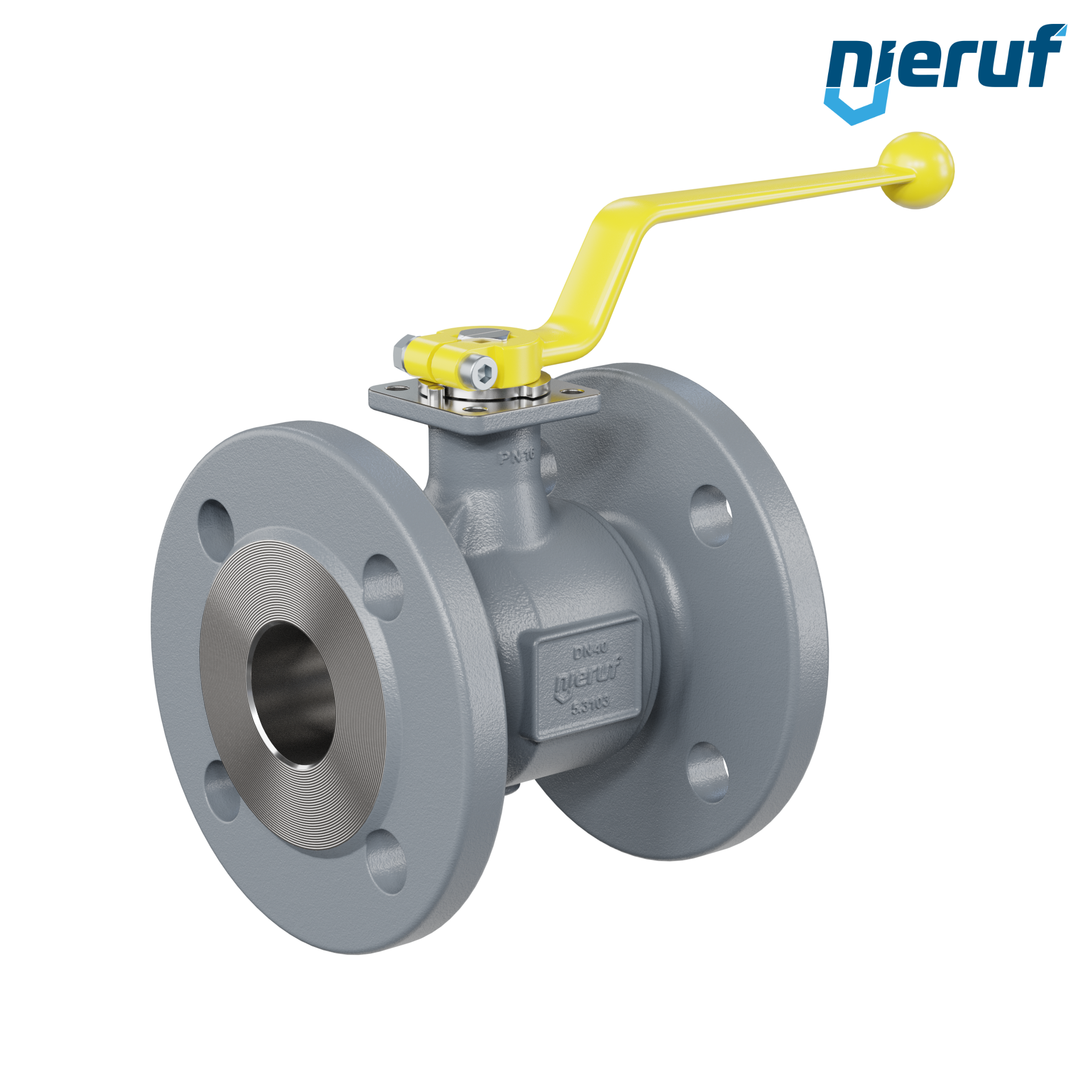 robinet à boisseau sphérique à brides DN40 FK01 corps en fonte à graphite sphéroïdal GJS 400-18 sphère en acier chromé joint PTFE certification DVGW-gaz