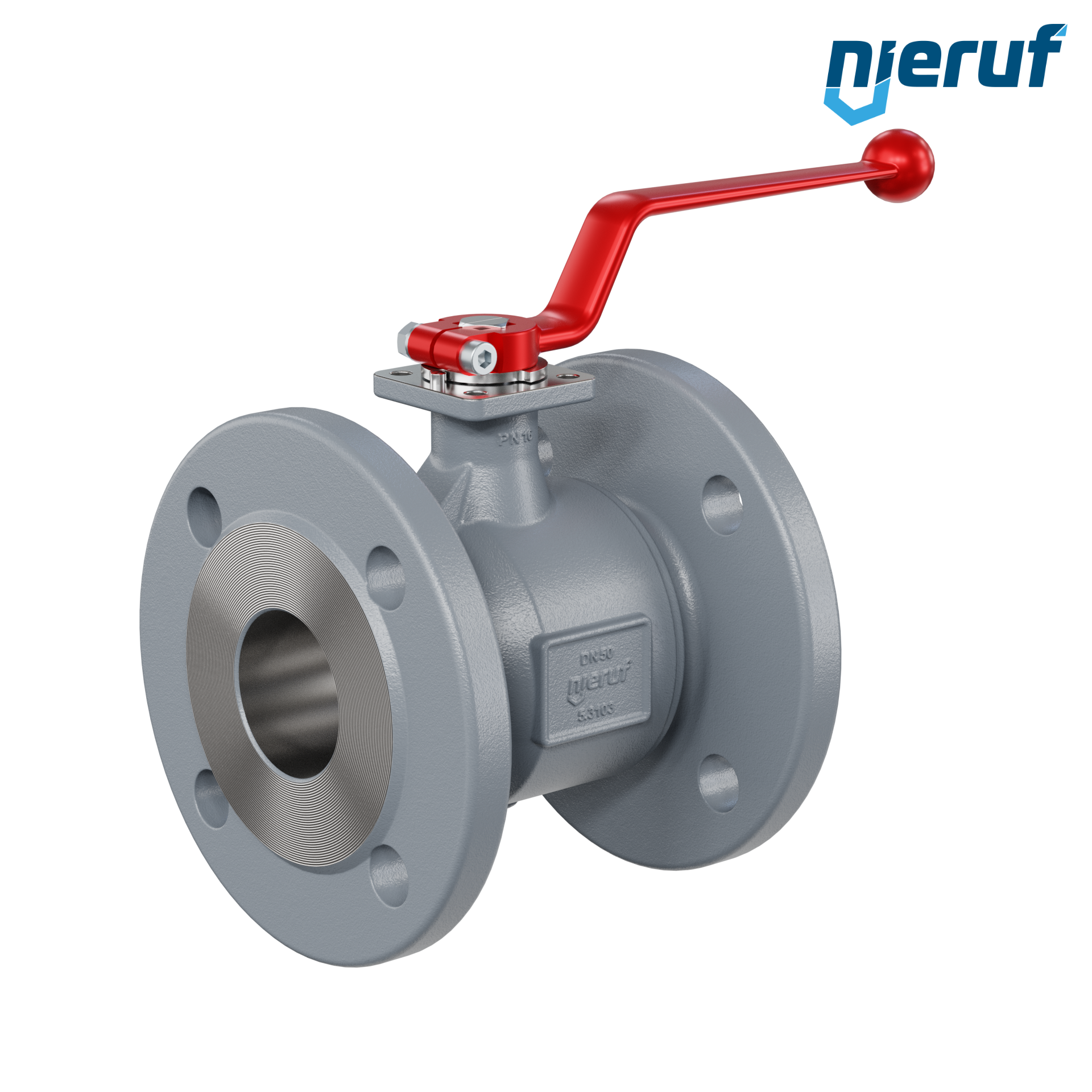 robinet à boisseau sphérique à brides DN50 FK02 corps en fonte à graphite sphéroïdal GJS 400-18 sphère entièrement en acier inoxydable 1.4408 joint PTFE / GF pour fluides liquides et gazeux