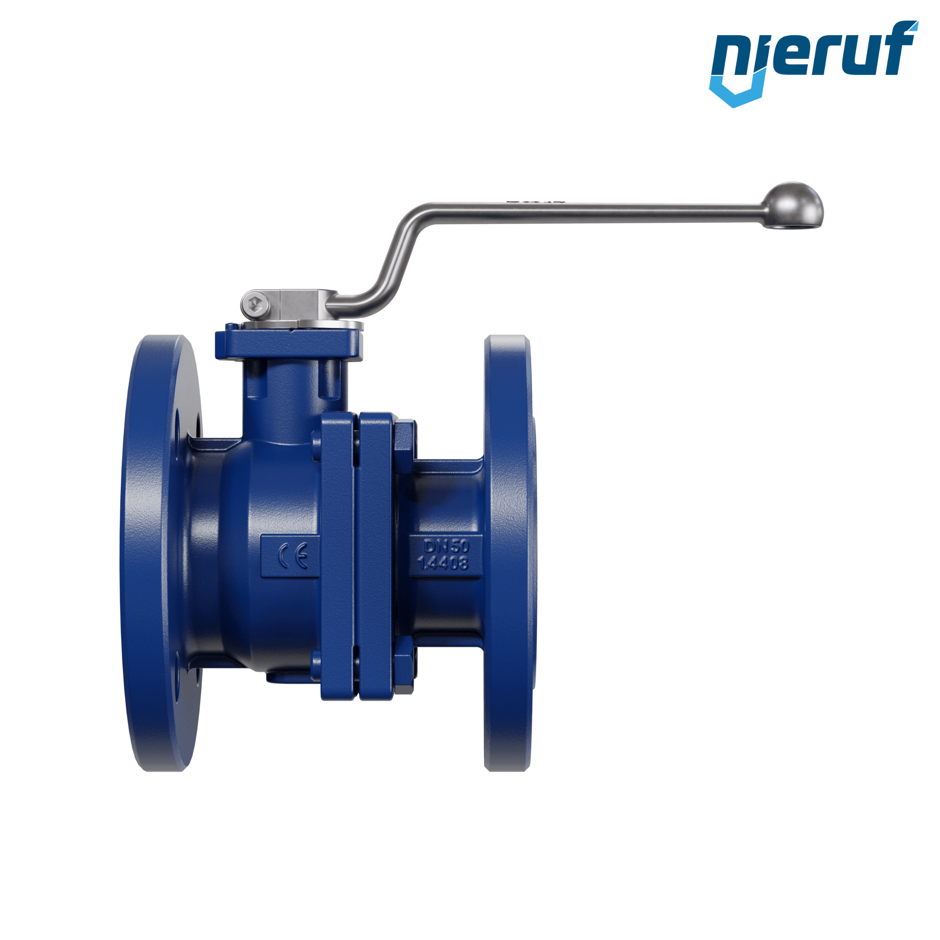 robinet à boisseau sphérique à brides Fire Safe (anti-incendie) DN50 PN16 FK12 corps en acier moulé 1.0619 sphère en acier inoxydable 1.4408 joint PTFE / GF pour fluides liquides et gazeux