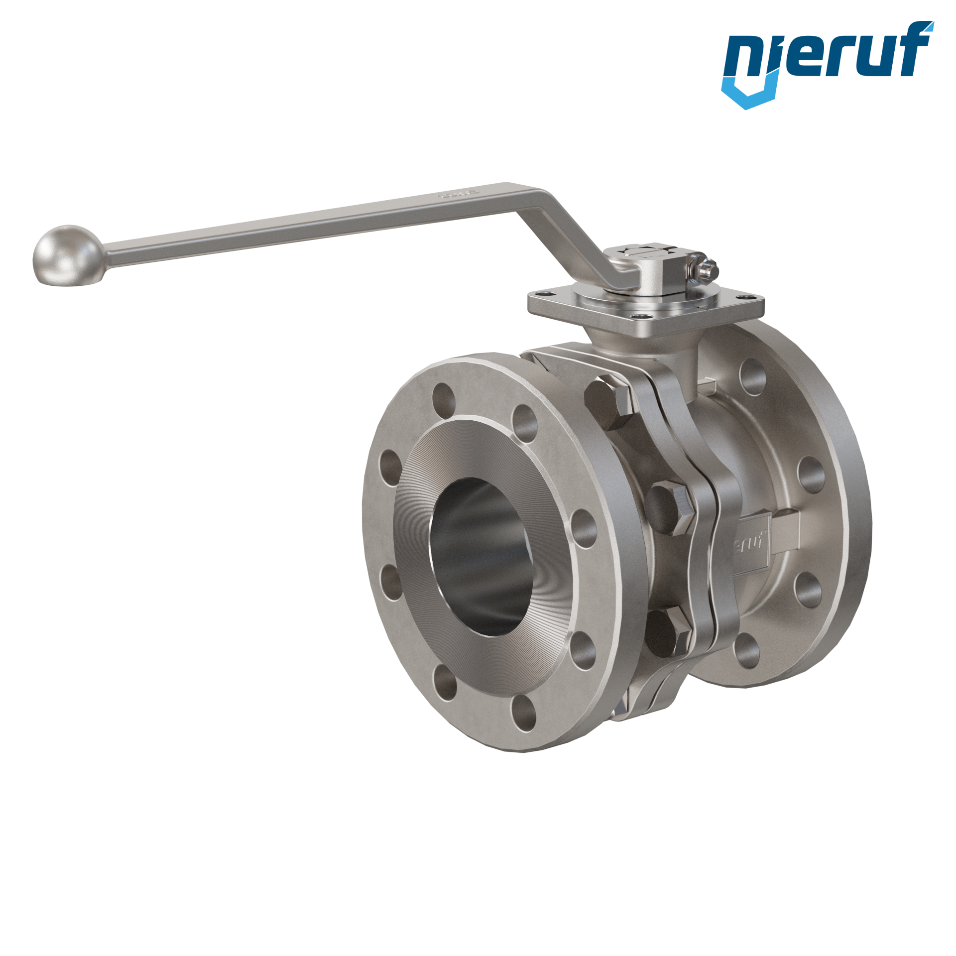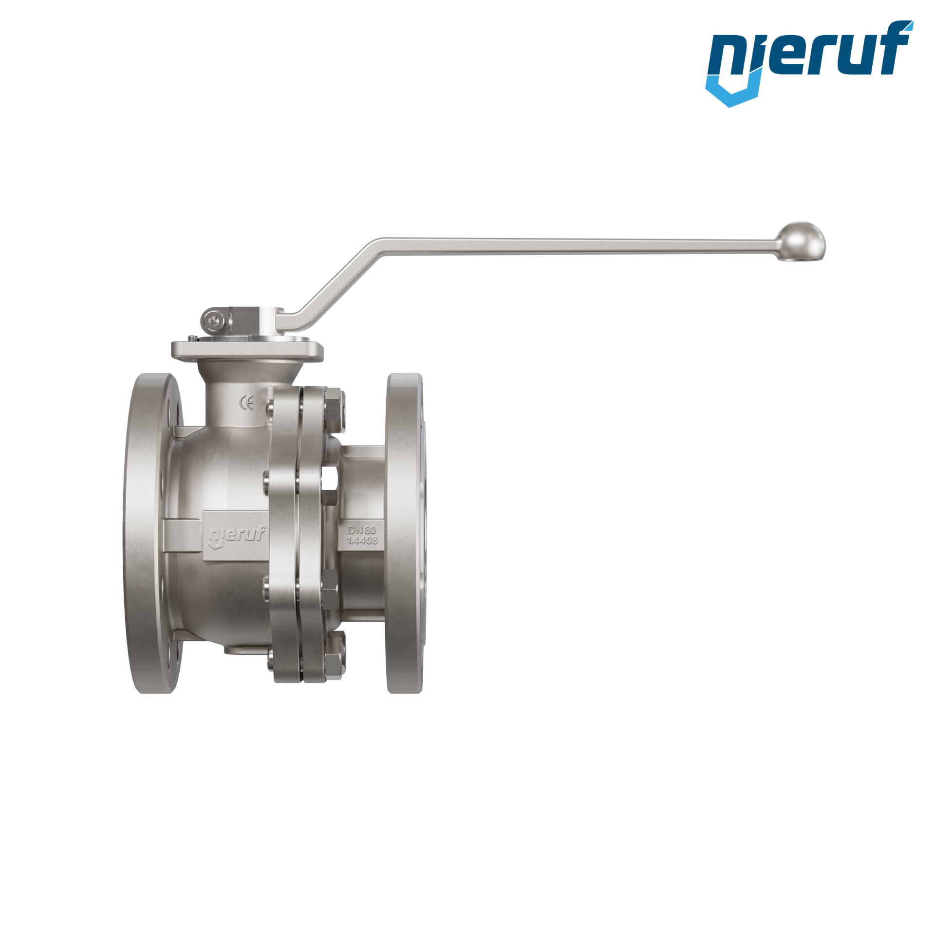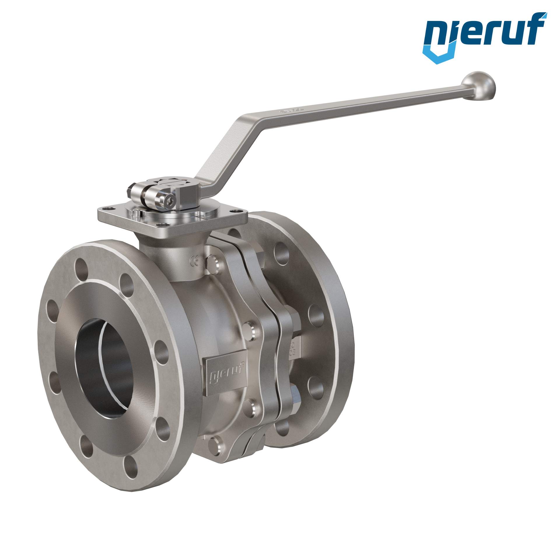 robinet à boisseau sphérique à brides Fire Safe (anti-incendie) DN80 PN16 FK05 corps en acier inoxydable 1.4408 sphère en acier inoxydable 1.4408 joint PTFE / GF pour fluides liquides et gazeux