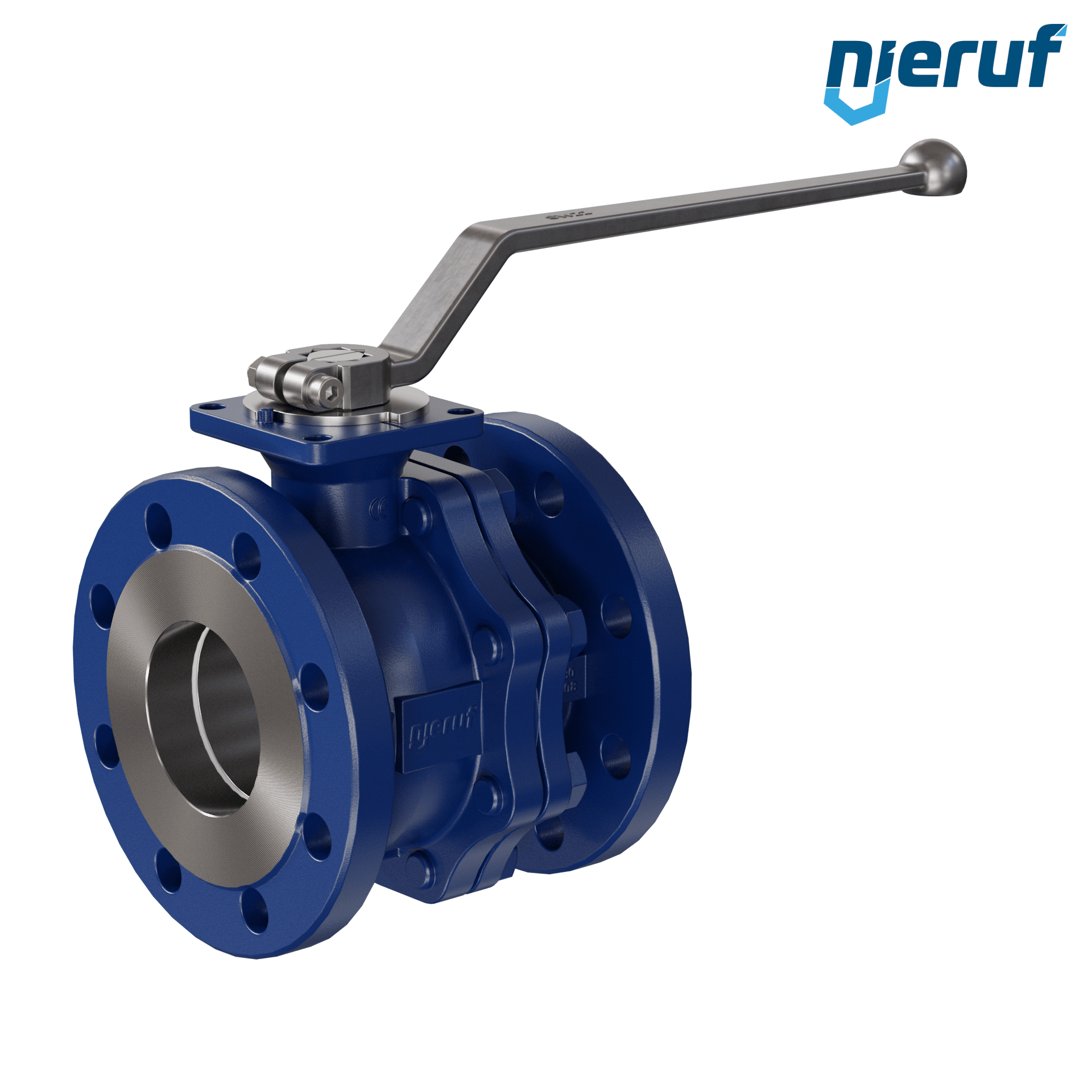robinet à boisseau sphérique à brides Fire Safe (anti-incendie) DN80 PN16 FK12 corps en acier moulé 1.0619 sphère en acier inoxydable 1.4408 joint PTFE / GF pour fluides liquides et gazeux