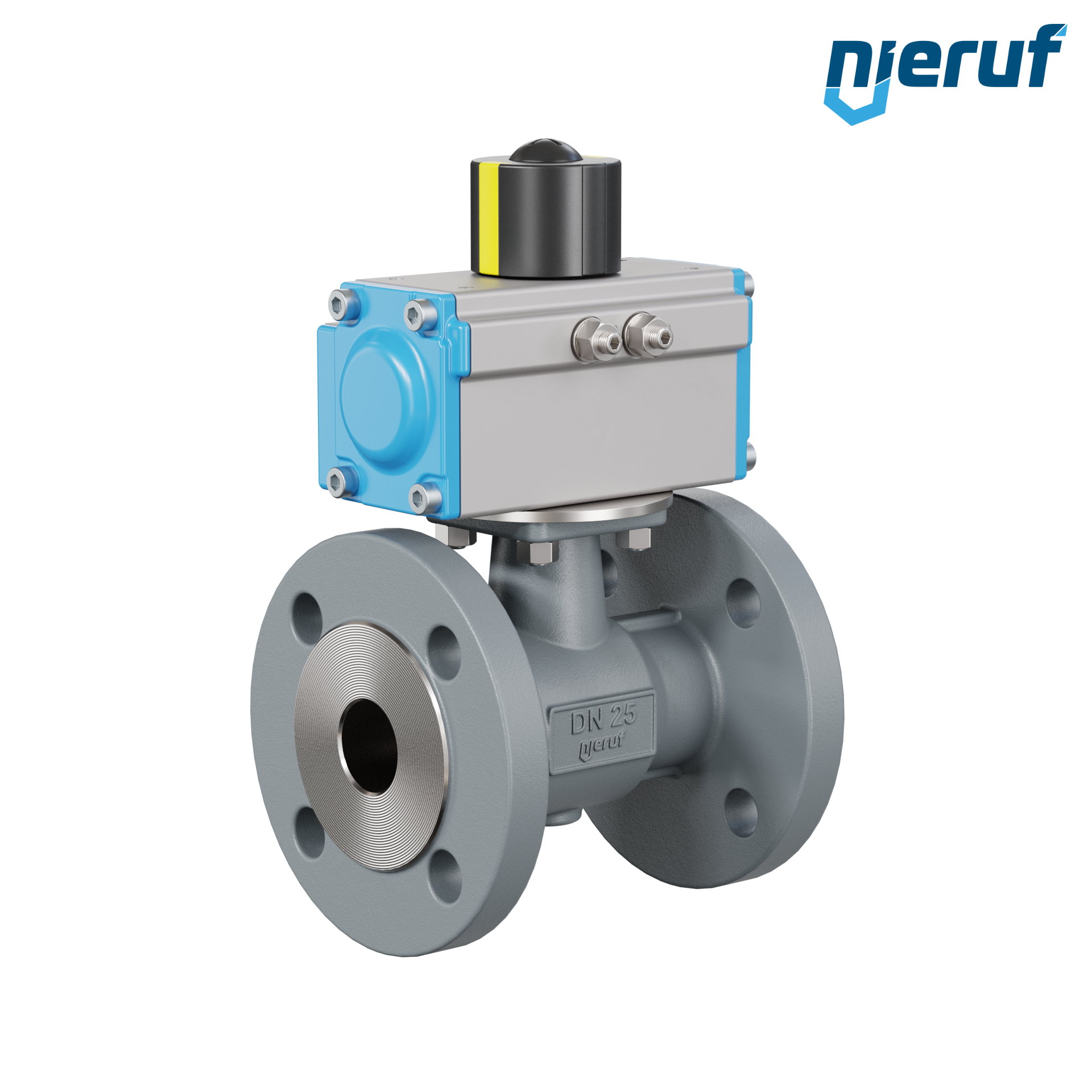 robinet à boisseau sphérique à brides automatique DN25 - 1" pouce fonte à graphite sphéroïdal GGG 40 PK04 actionneur rotatif pneumatique GD040 en aluminium (fonctionnement: GD = à double effet)