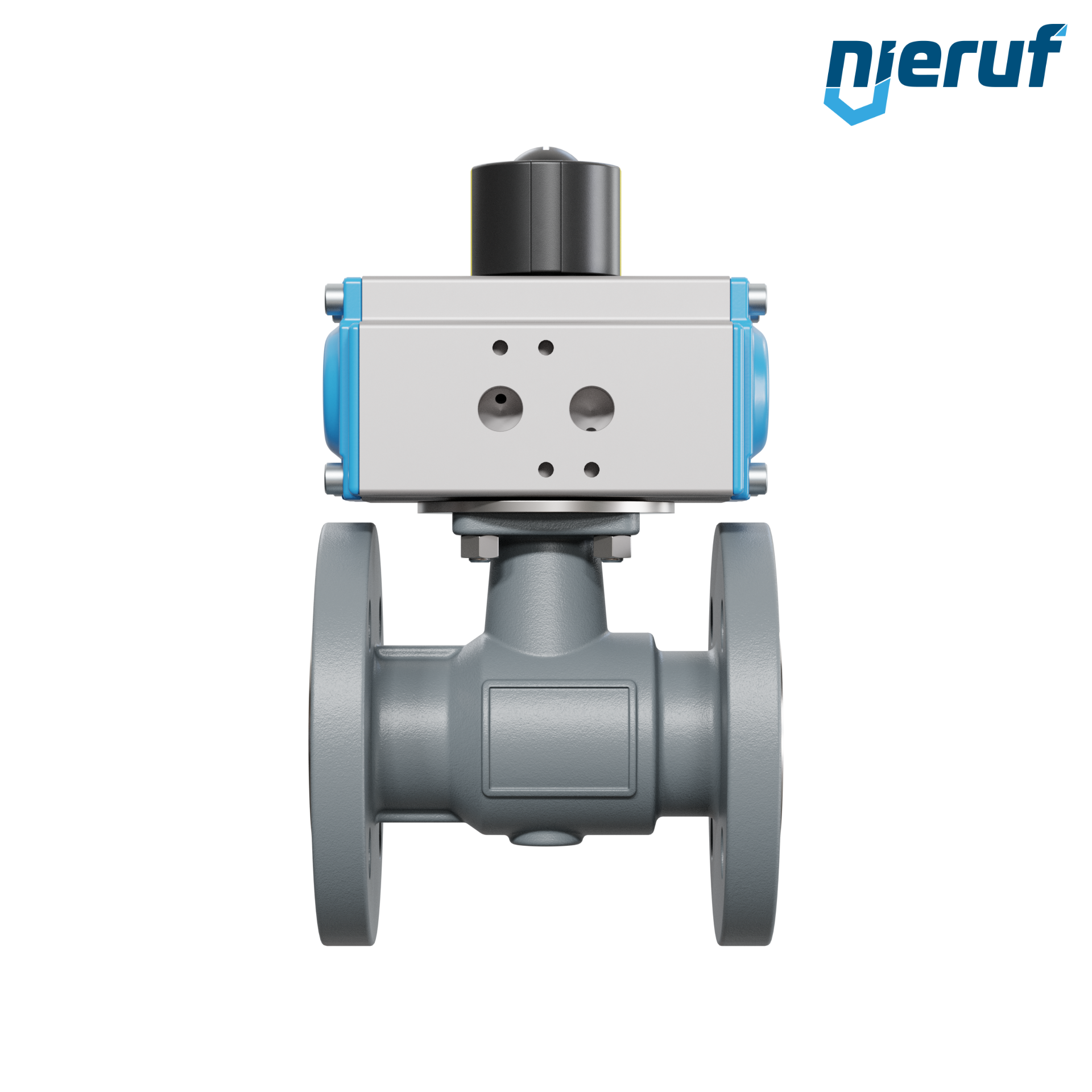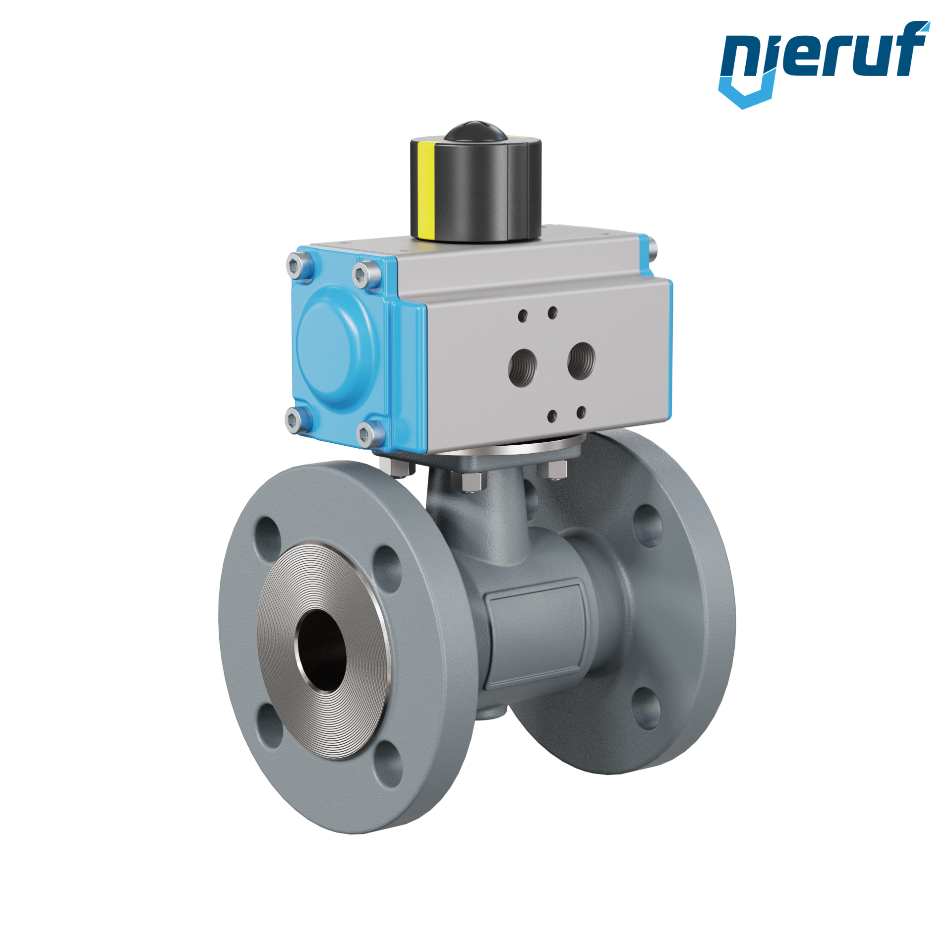 pour ce robinet à boisseau sphérique automatique à brides de haute qualité en fonte à graphite sphéroïdal avec actionneur rotatif pneumatique (GD = double effet), le montage direct sur bride des électrovannes Namur est possible. L'actionnement pneumatique se fait au moyen d'air comprimé filtré.