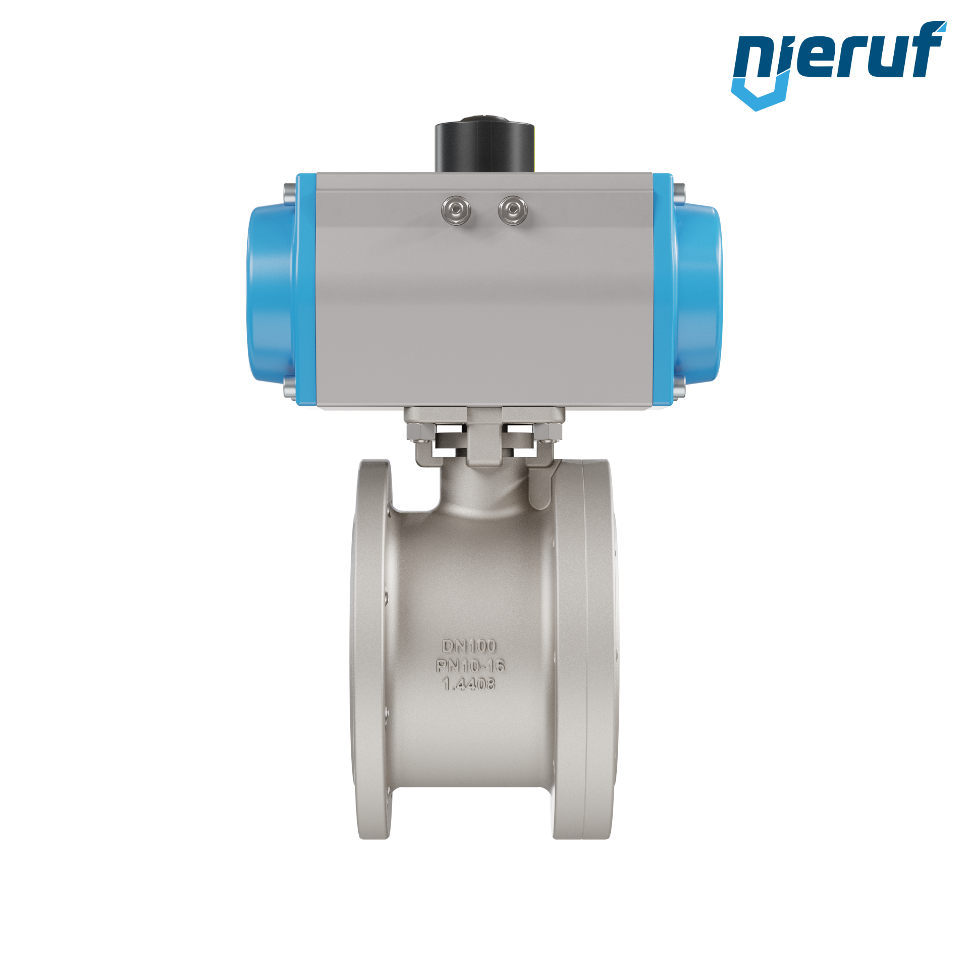 robinet à boisseau sphérique à brides compact DN100 acier inoxydable 1.4408 PK07 actionneur rotatif pneumatique GD110 en aluminium (fonctionnement: GD = à double effet)