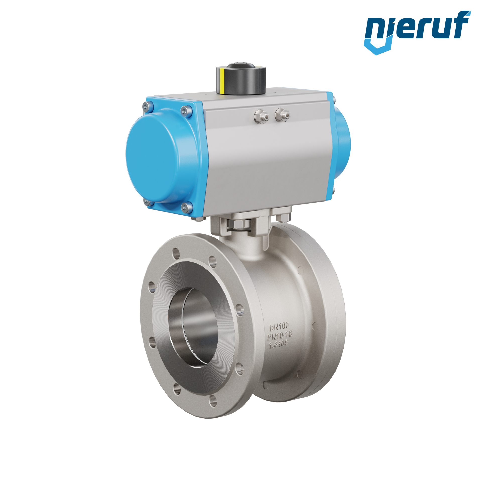 | Caractéristiques du produit | pour ce robinet à boisseau sphérique automatique à bride de haute qualité en acier inoxydable avec actionneur rotatif pneumatique (GD = double effet), le montage direct sur bride des électrovannes Namur est possible. |