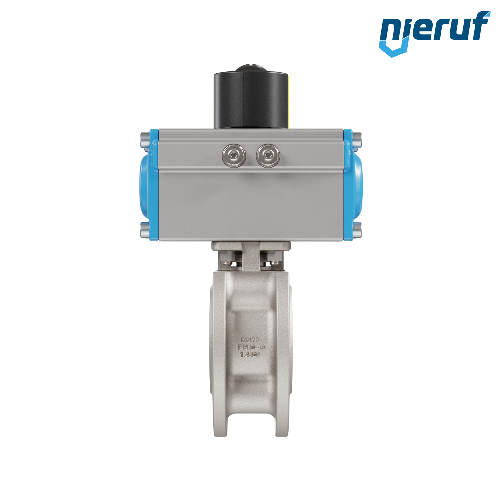 | Caractéristiques du produit | pour ce robinet à boisseau sphérique automatique à bride de haute qualité en acier inoxydable avec actionneur rotatif pneumatique (GD = double effet), le montage direct sur bride des électrovannes Namur est possible. |