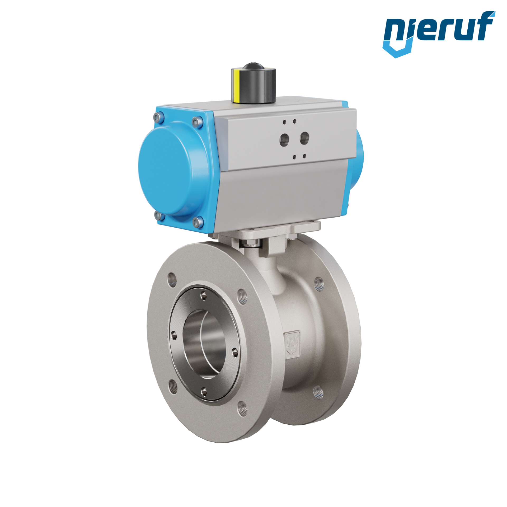 pour ce robinet à boisseau sphérique automatique à bride de haute qualité en acier inoxydable avec actionneur rotatif pneumatique (GD = double effet), le montage direct sur bride des électrovannes Namur est possible.