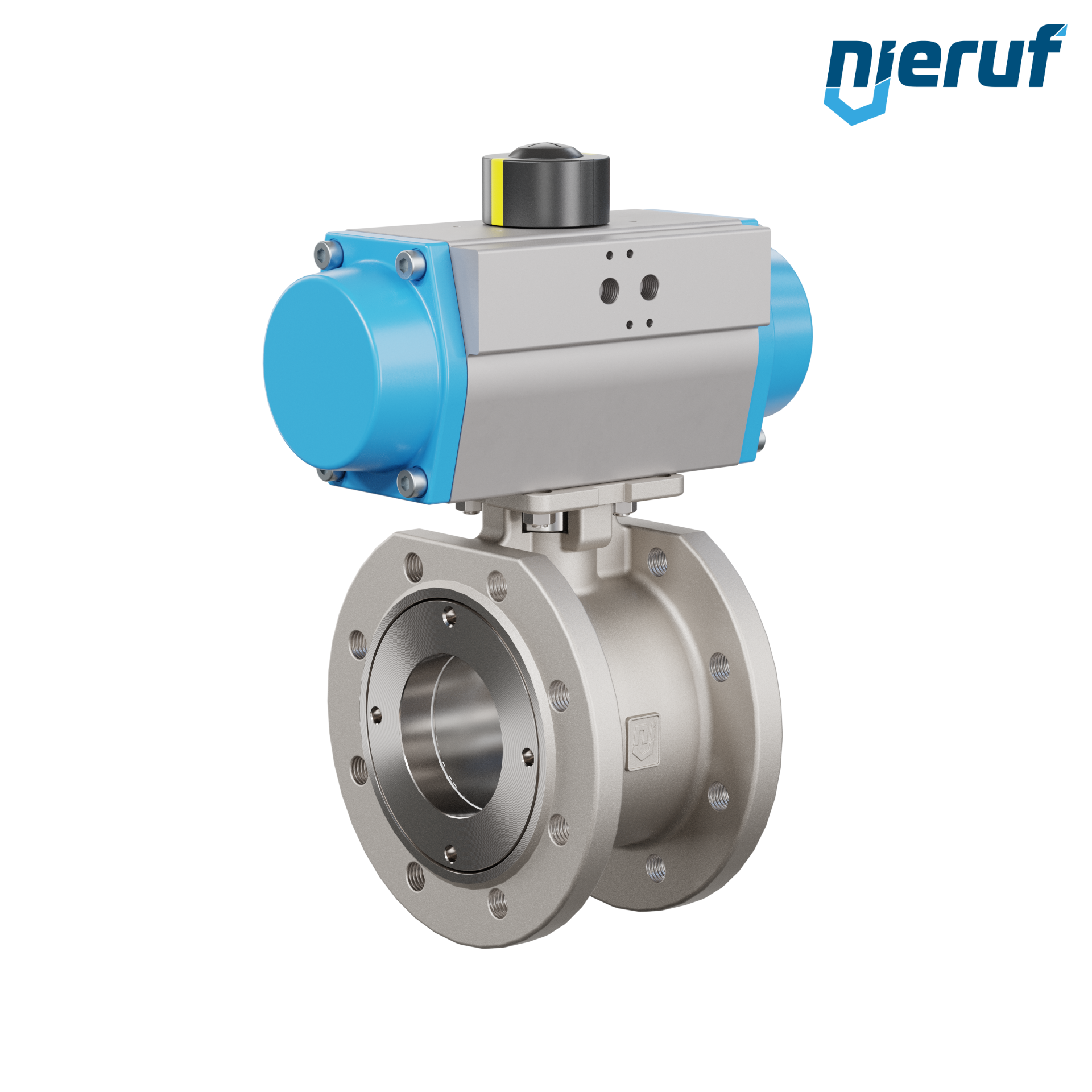 pour ce robinet à boisseau sphérique automatique à bride de haute qualité en acier inoxydable avec actionneur rotatif pneumatique (GD = double effet), le montage direct sur bride des électrovannes Namur est possible.