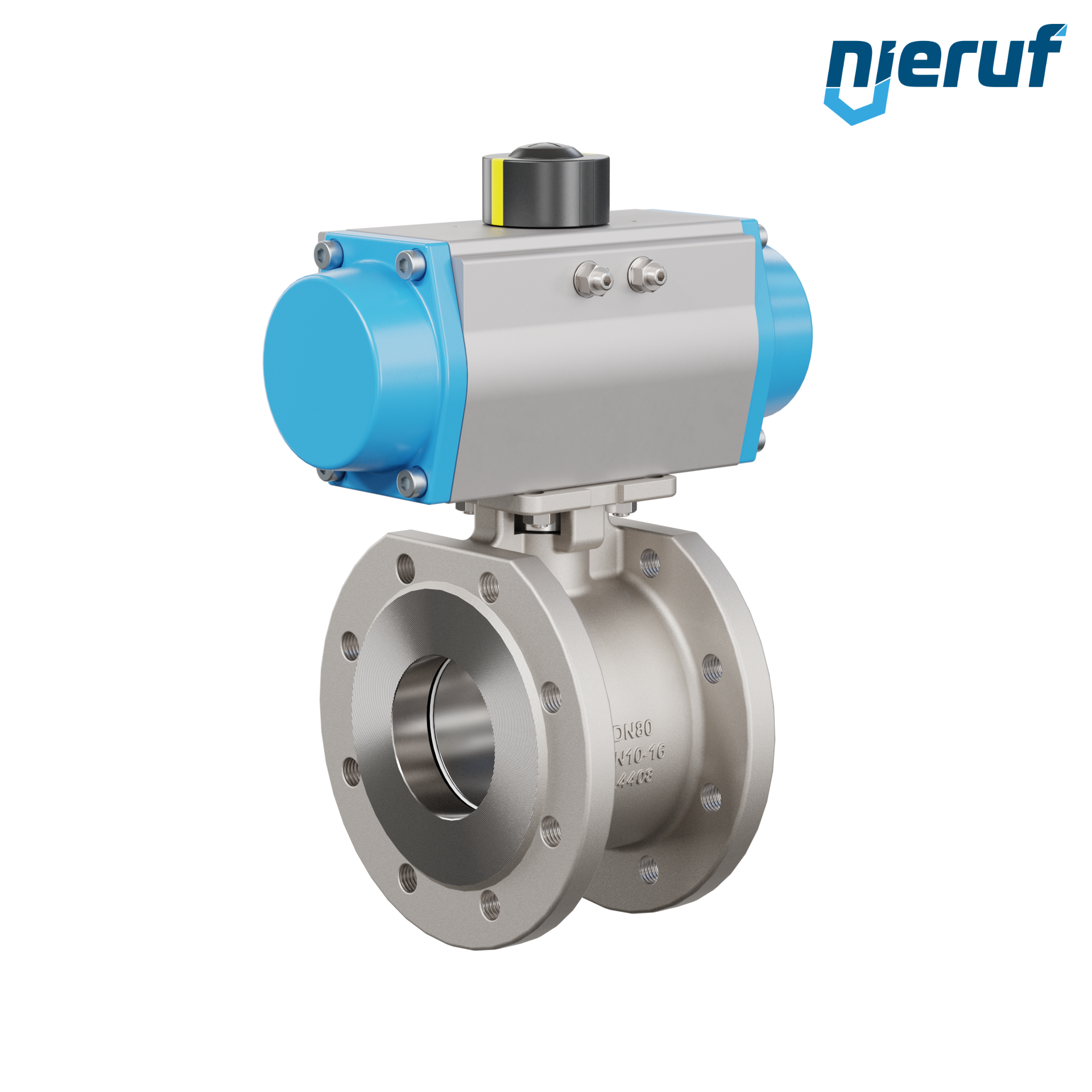| Caractéristiques du produit | pour ce robinet à boisseau sphérique automatique à bride de haute qualité en acier inoxydable avec actionneur rotatif pneumatique (GD = double effet), le montage direct sur bride des électrovannes Namur est possible. |