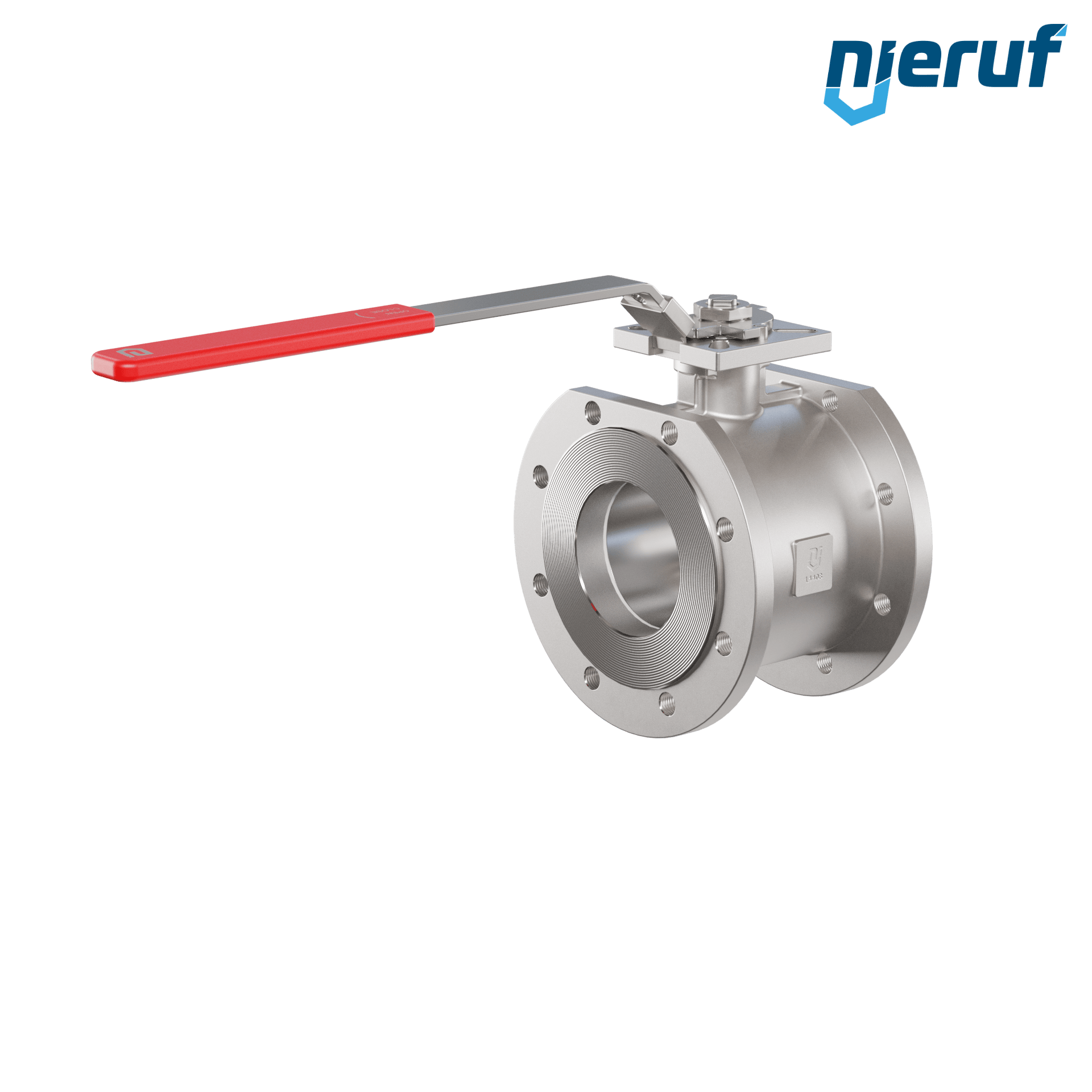 robinet à boisseau sphérique en acier inoxydable compact avec levier et sphère en acier inoxydable.Brides avec trous de perçage métriques pour fermer les systèmes de canalisation.