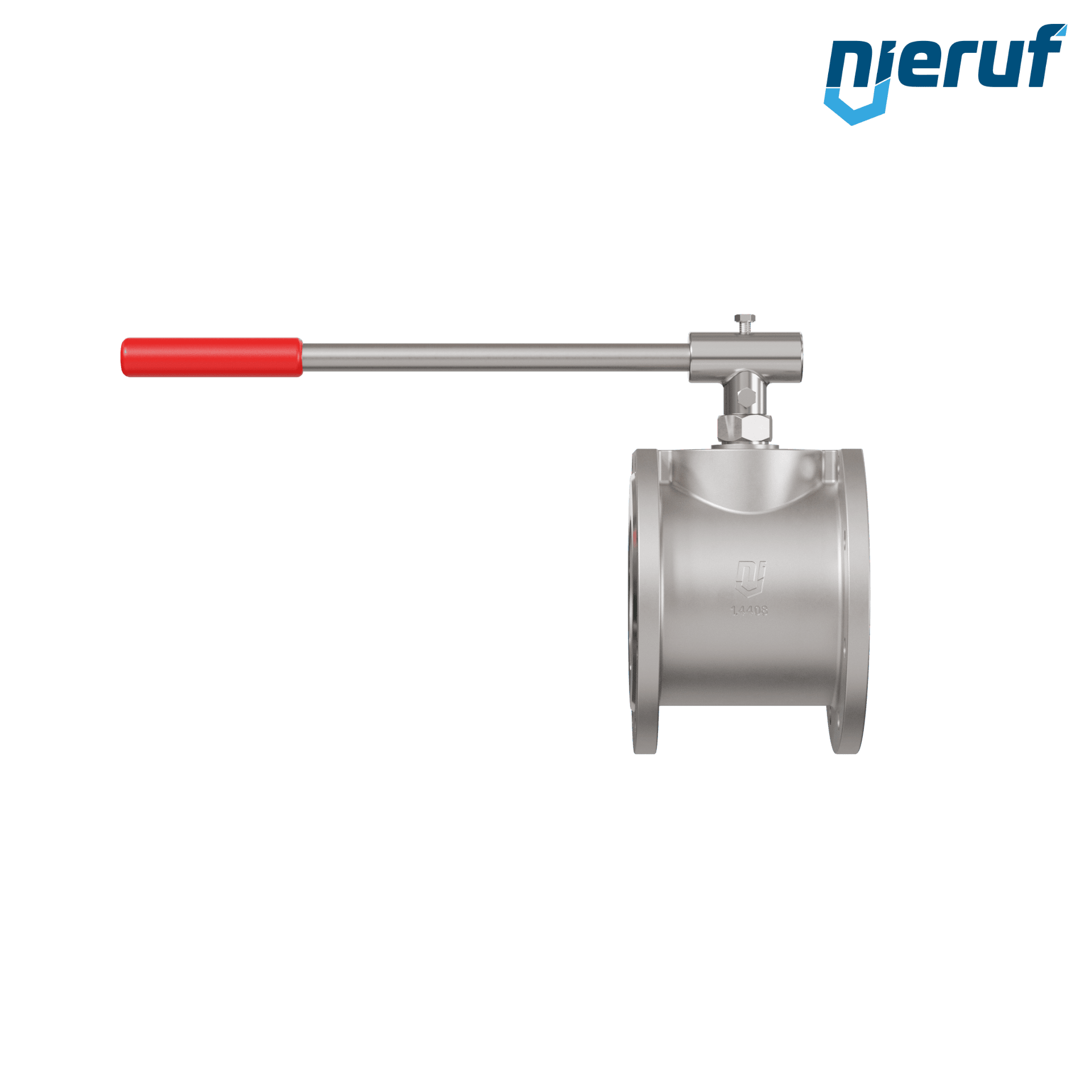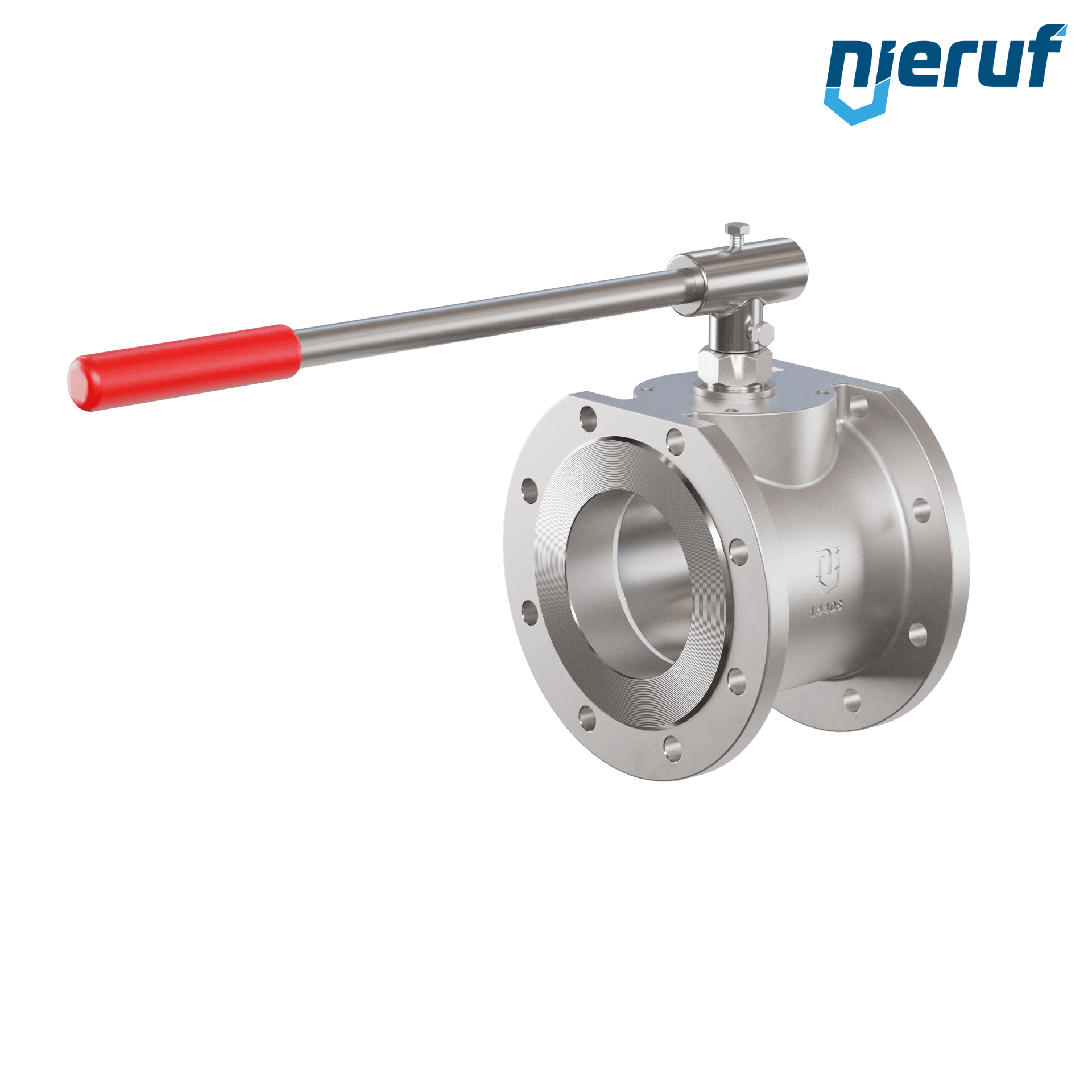 robinet à boisseau sphérique en acier inoxydable compact avec levier et sphère en acier inoxydable.Brides avec trous de perçage métriques pour fermer les systèmes de canalisation.