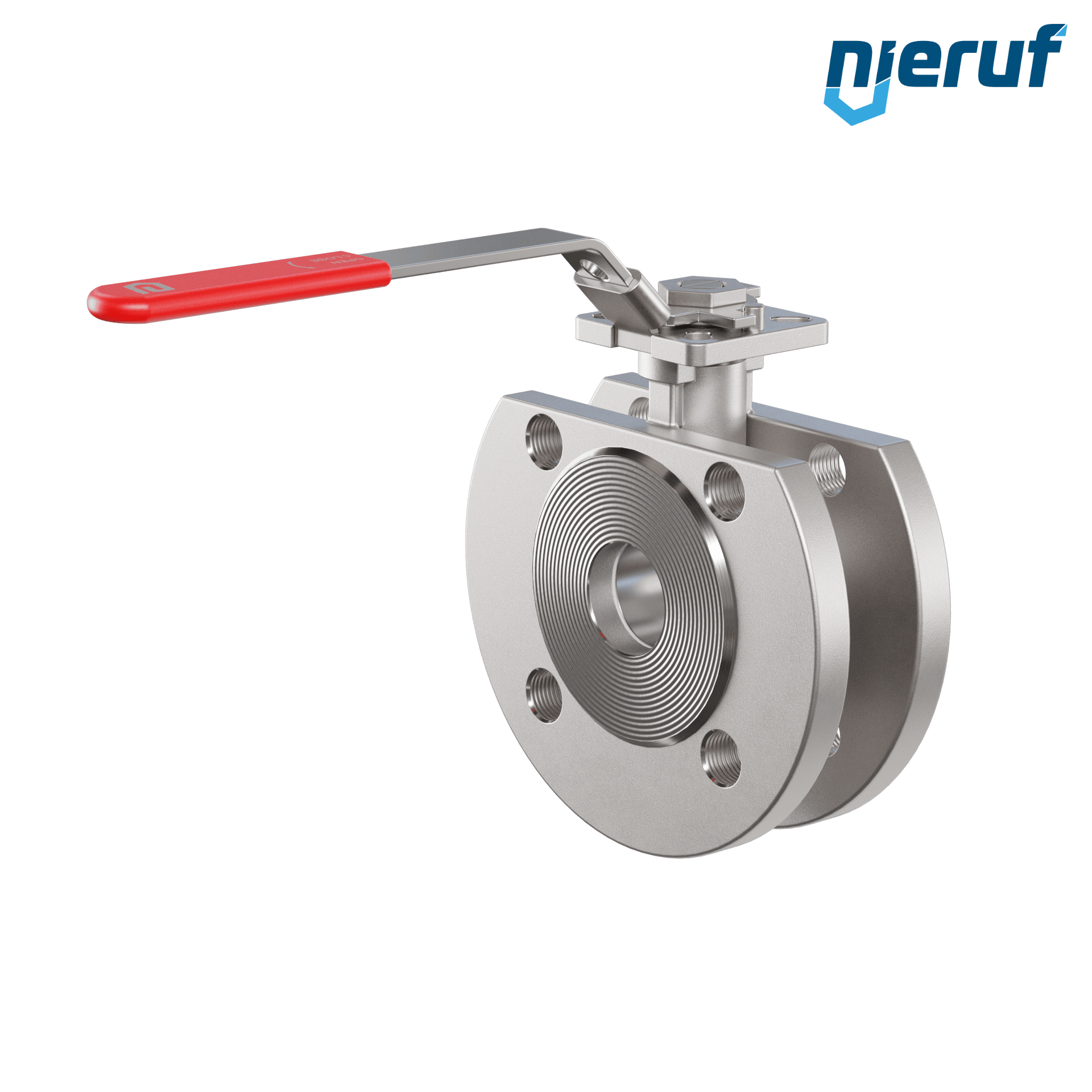 robinet à boisseau sphérique compact DN32 PN16 en acier inoxydable 1.4408 avec joint en PTFE et raccordement par bride selon EN 1092-1 PN 16 pour fluides liquides et gazeux