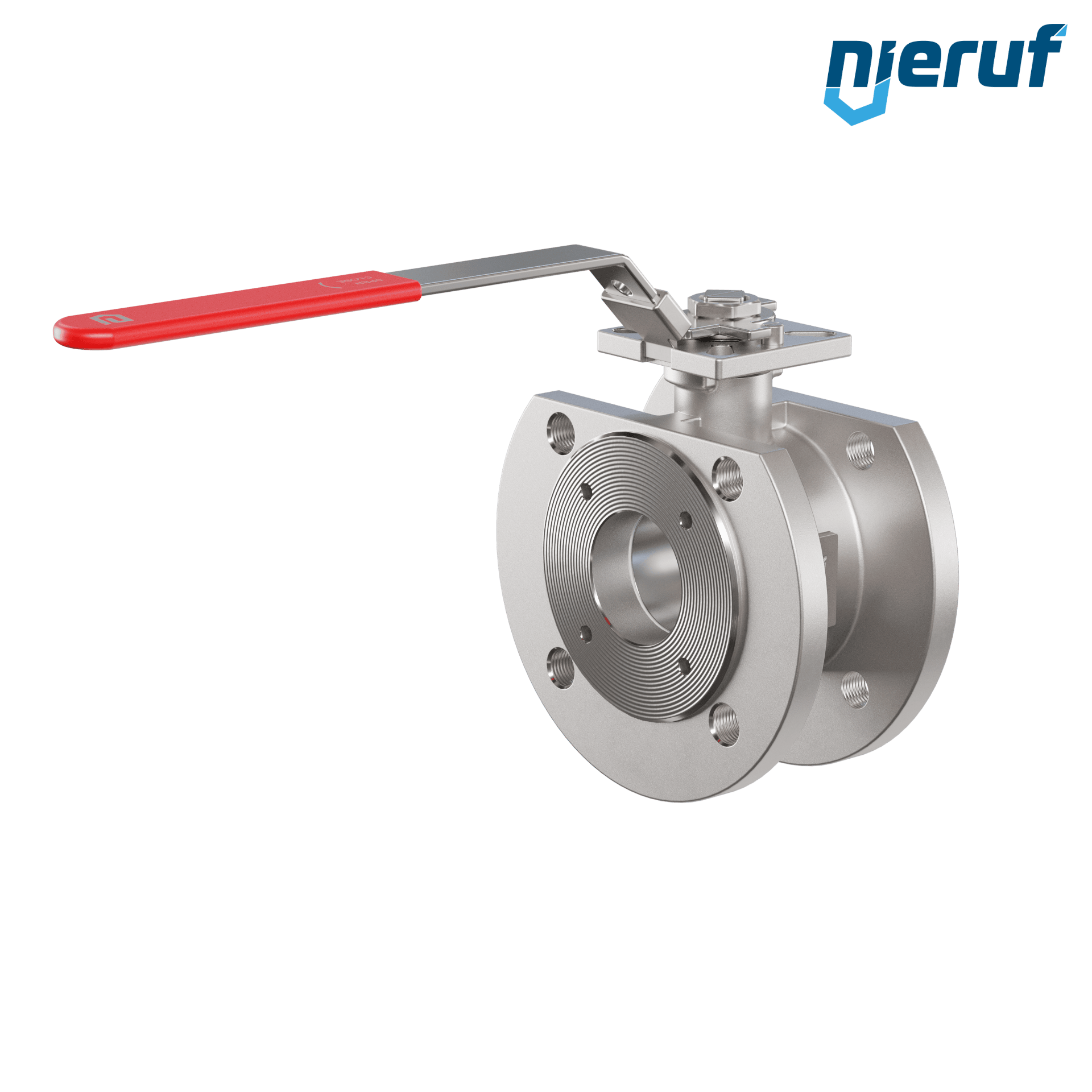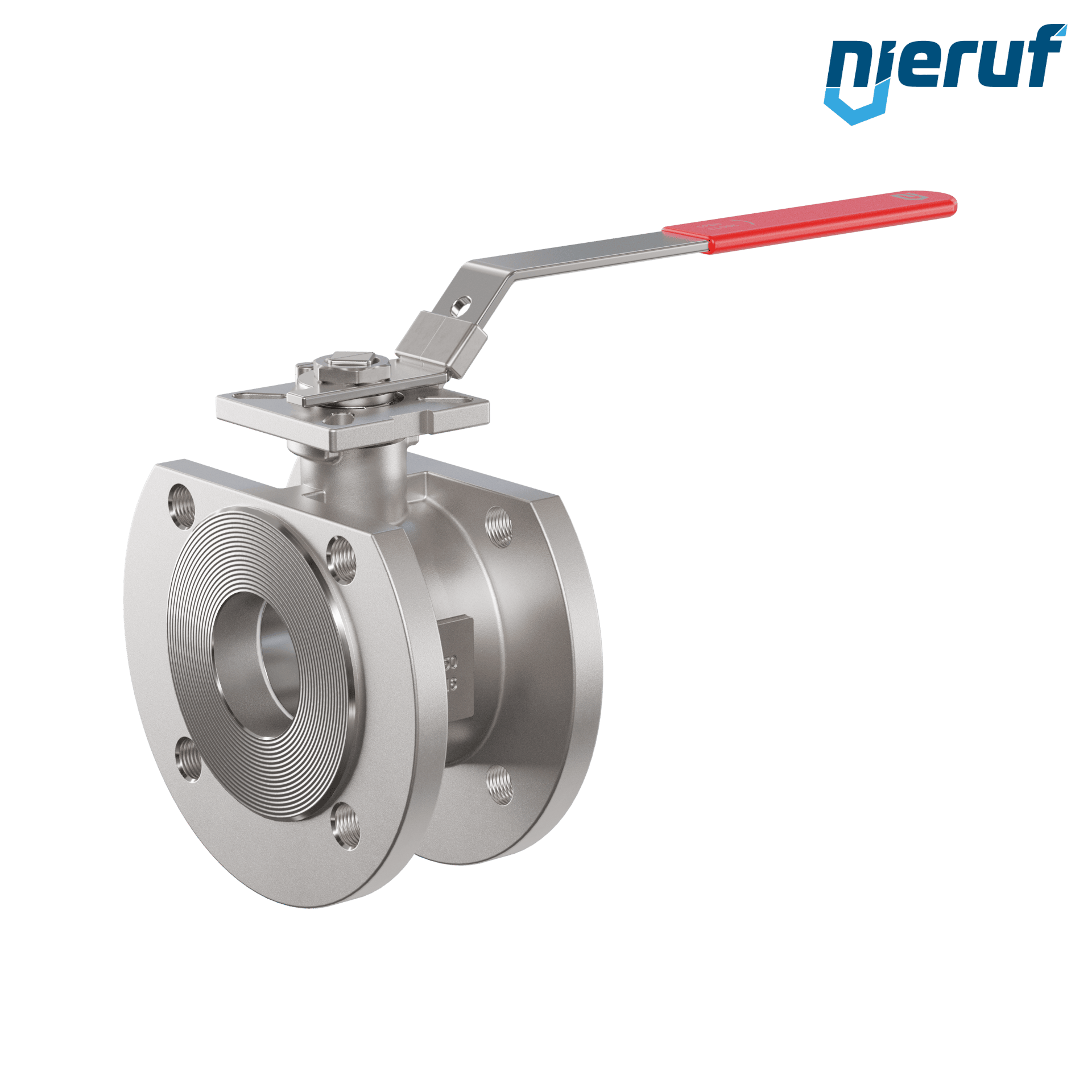 robinet à boisseau sphérique en acier inoxydable compact avec levier et sphère en acier inoxydable.Brides avec trous de perçage métriques pour fermer les systèmes de canalisation.